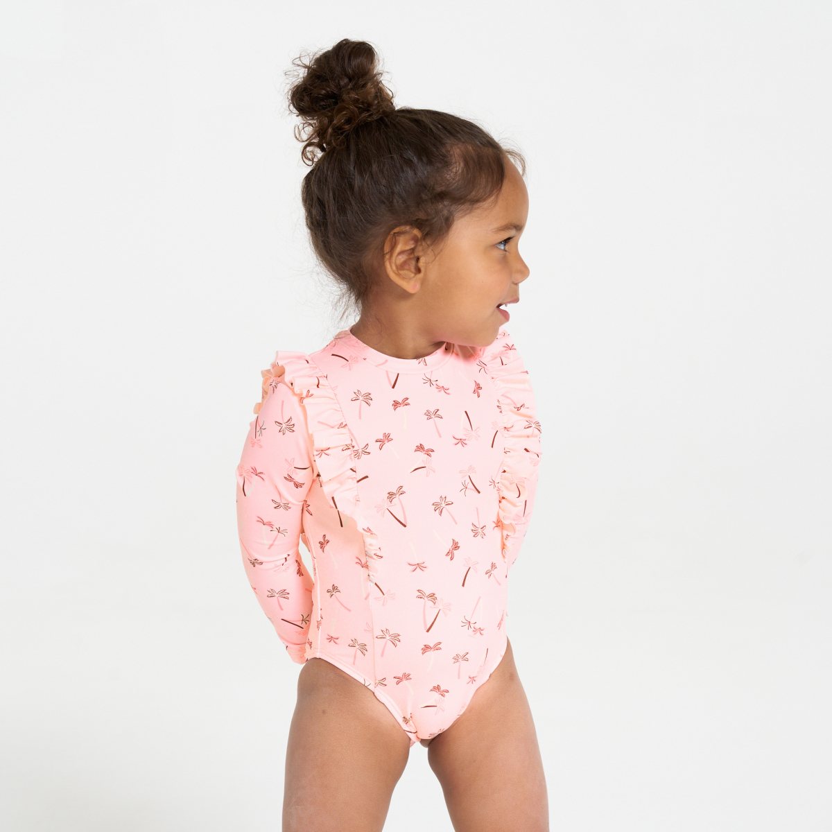 بذلة سباحة وردية اللون مطبوع عليه أشجار نخيل للفتيات الرضع