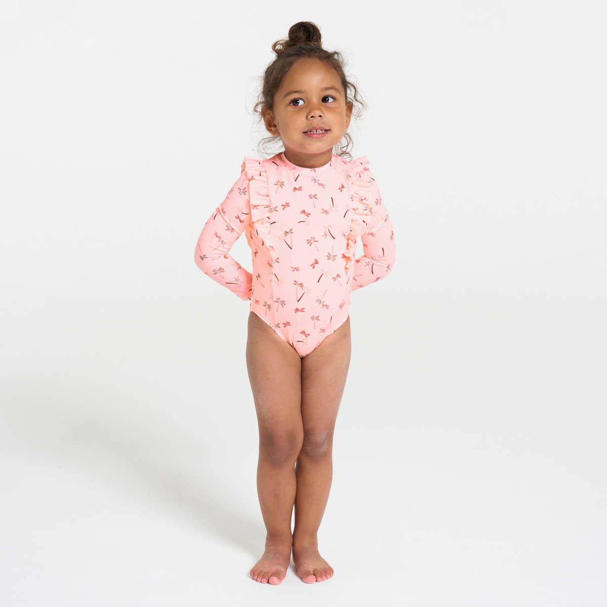 وصفي يُعد هذا الأفرول بأكمامه الطويلة مثاليًا لترتديه الفتيات للذهاب إلى الشاطئ أو حمام السباحة. نحن نحب نقوشه الصيفية وألوانه الفاتنة وكشكشته. سحّاب على الظهر لسهولة الارتداء.