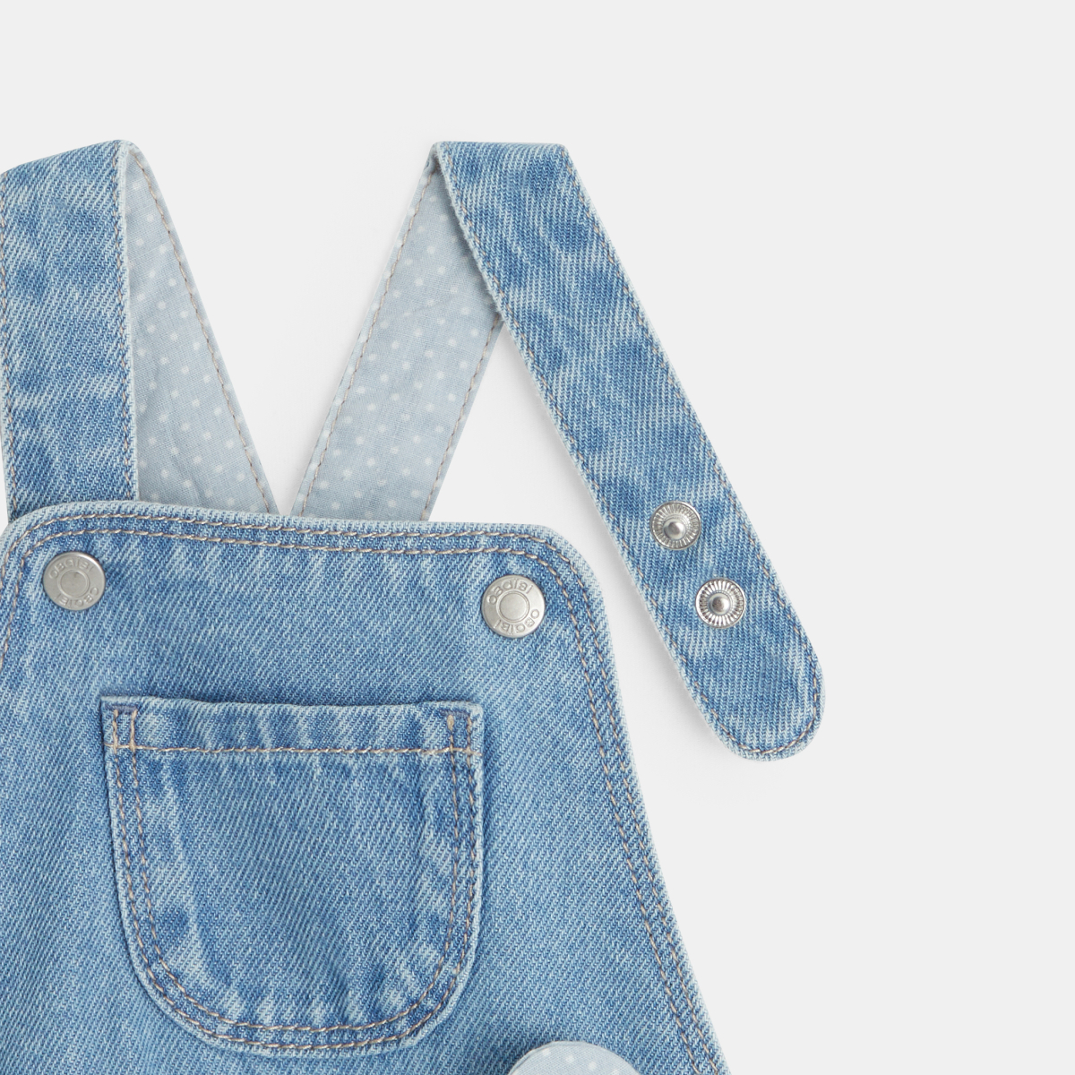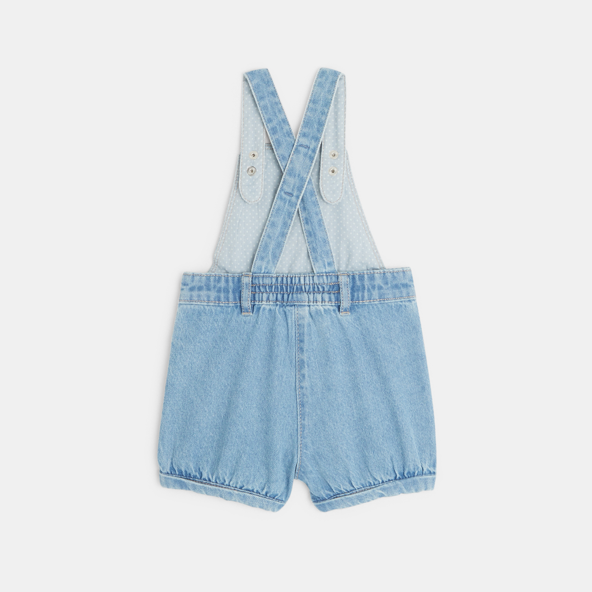 موديل عصري على الدوام يمكن ارتداؤه في كل الفصول مع أو بدون كولون. سالوبيت شورت جينز مع بطانة داخلية متباينة اللون ومنقّطة. حمّالات قابلة للتعديل، مع ربطة جميلة جدًا على جانب الخصر. كبسات على السرج لسهولة الارتداء.