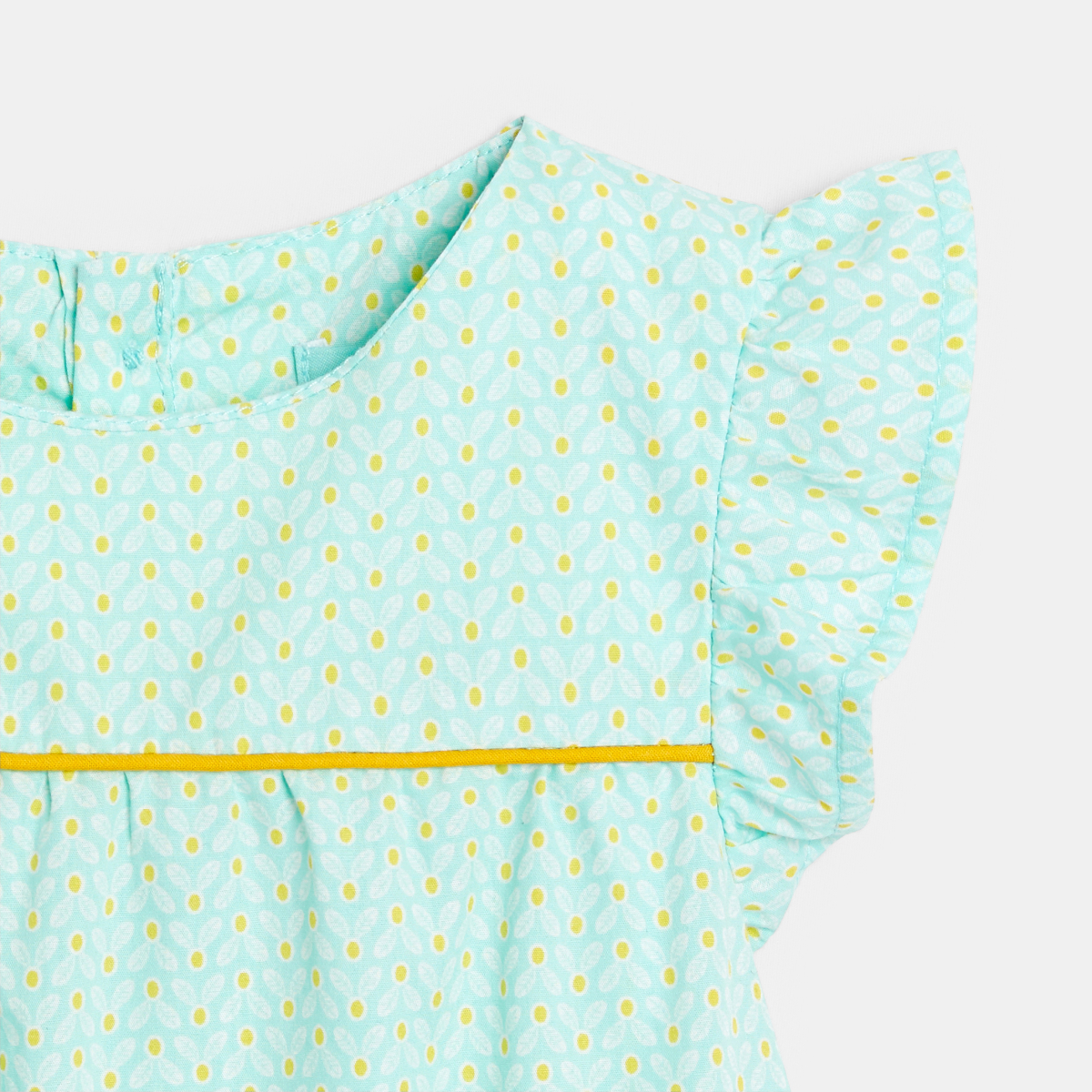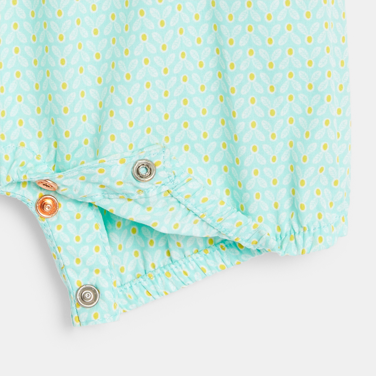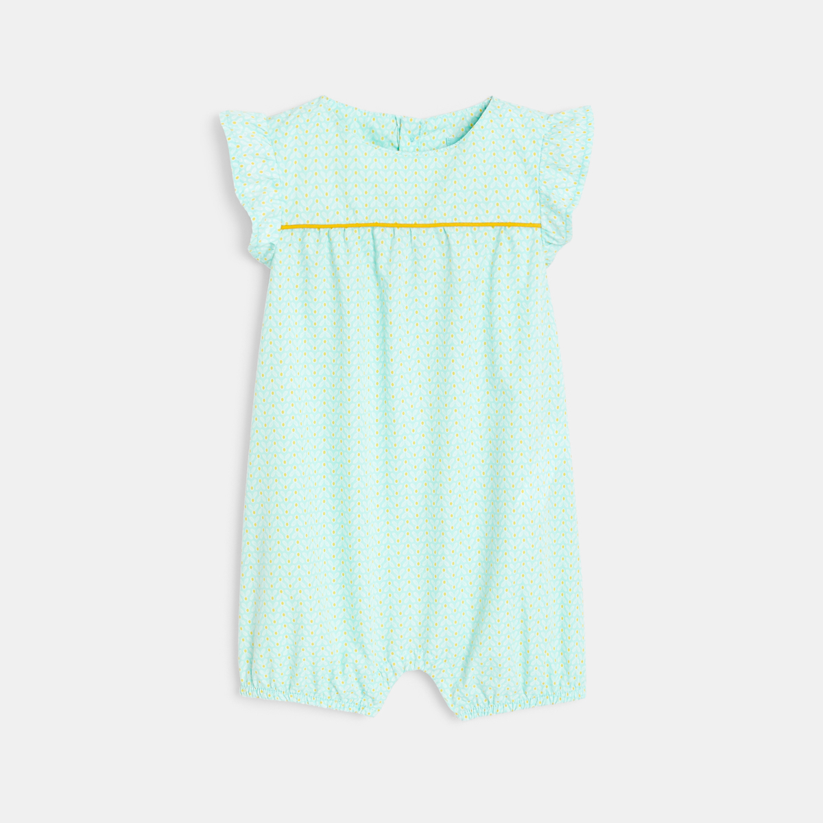 لمسة من الذوق في خزانة الملابس مع هذه الأفرول القصير على شكل سروال قصير. الفتيات يعشقن نقش صور الفاكهة الموجودة عليه وقطنه الخفيف والمريح. أكمام قصيرة مكشكشة. أزرار على الظهر وأزرار بكبسولة عند المنشعب، وشريط مطاطي عند الفخذين.