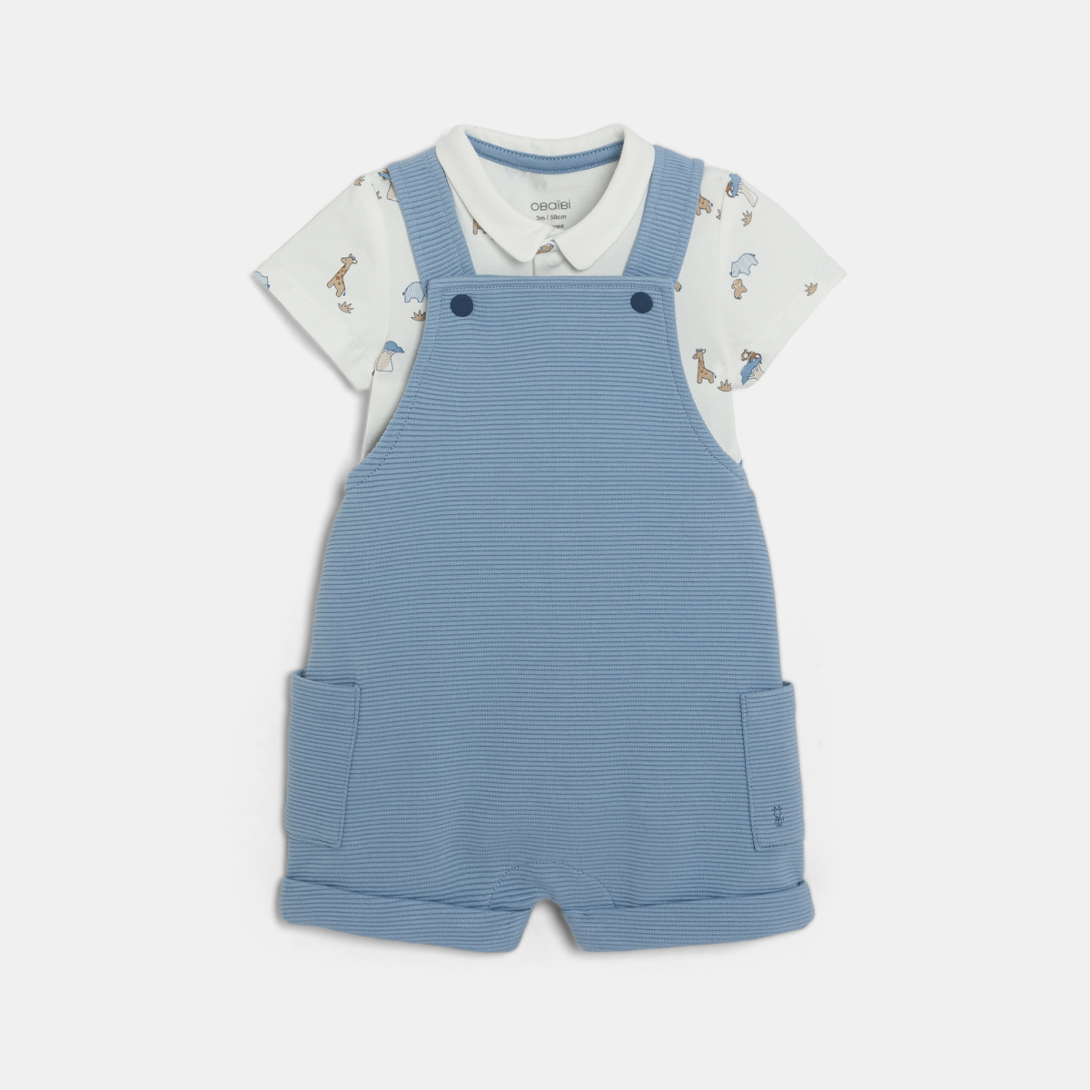 سالوبيت قصير من القطن الفاخر وبودي برسوم حيوانات باللون الأزرق للفتيان الصغار.
