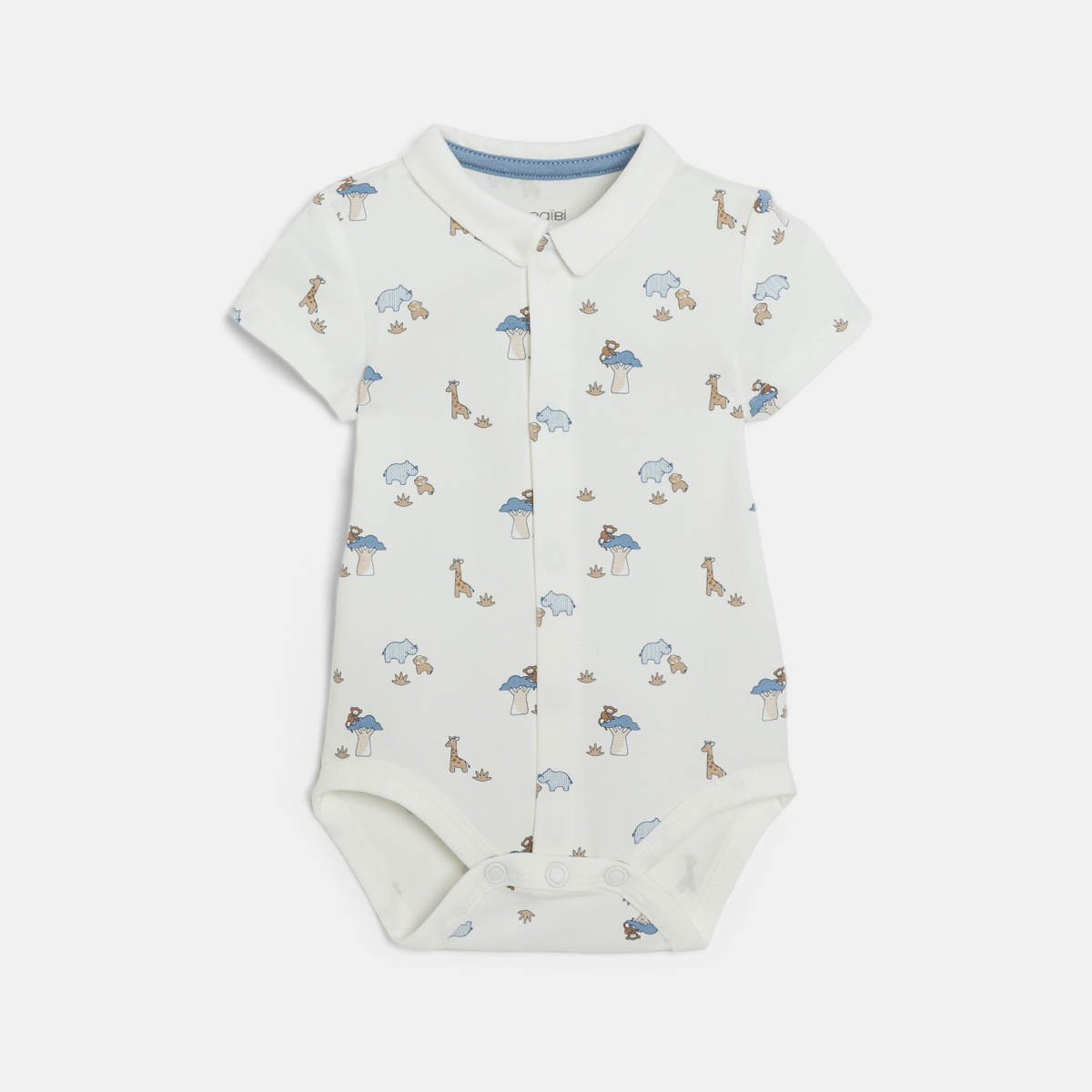 الكل يحب أصالة القطن العثماني، مع خطوطه الناتئة، لهذا السالوبيت القصير والمريح. ومن أجل تشكيل طقم متكامل، هذا البودي ذو الأكمام القصيرة، المصنوع من القطن الناعم، تدب فيه الحياة بحيوانات السافانا، وهذا يبهج الأولاد. يُفتح البودي بأزرار كبس من الأمام حتى لا يُبالغ في تحريك الصغار في الأيام الأولى.من حياتهم.