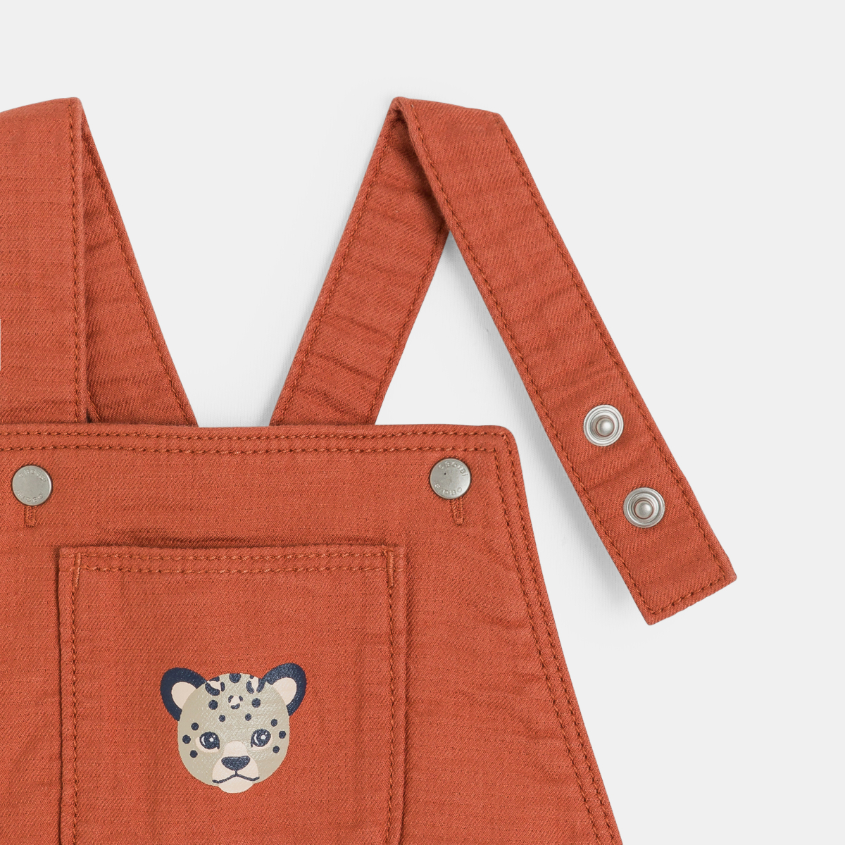 إطلالة الشارع لهذا السالوبيت القصير ذو الجيوب الكارجو. يعجبنا لونه الدافئ وخامته الفاخرة الناعمة على بشرة الأولاد. حمالات قابلة للضبط وشريط عند الخصر.