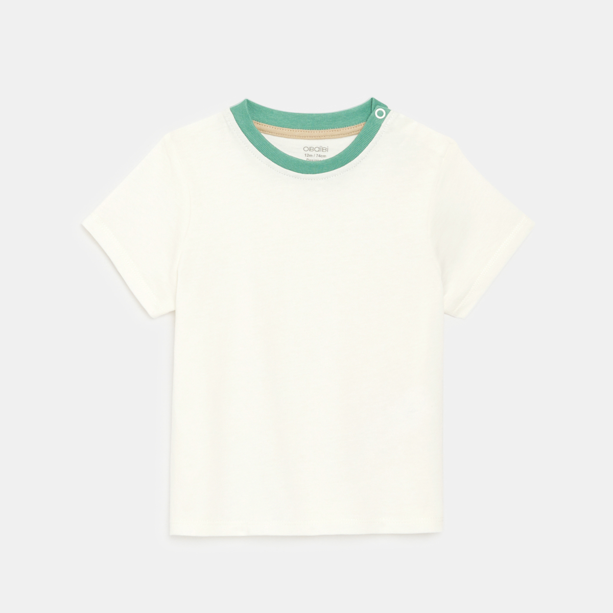وصفي الزي المثالي للطقس الدافئ: مريح للعب والجري بحرية، وأنيق بخطوطه التي تساير الموضة دائمًا. سالوبيت قصير بحمّالات قابلة للضبط وأزرار ضغط بين الساقين. تي شيرت بأكمام قصيرة مع فتحة رقبة مستديرة بلون مختلف وأزرار ضغط عند الكتف ليرتديه الأولاد بسهولة.