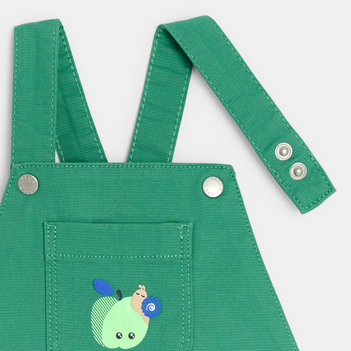 هذا السالوبيت القصير المصنوع من القطن الفاخر هو نجم الموسم باللون الأخضر الذي يضفي الحيوية على خزانة ملابس أي ولد. رسومات متناسقة مع تشكيلة أوبيبي. حمالات بأزرار ضغط.