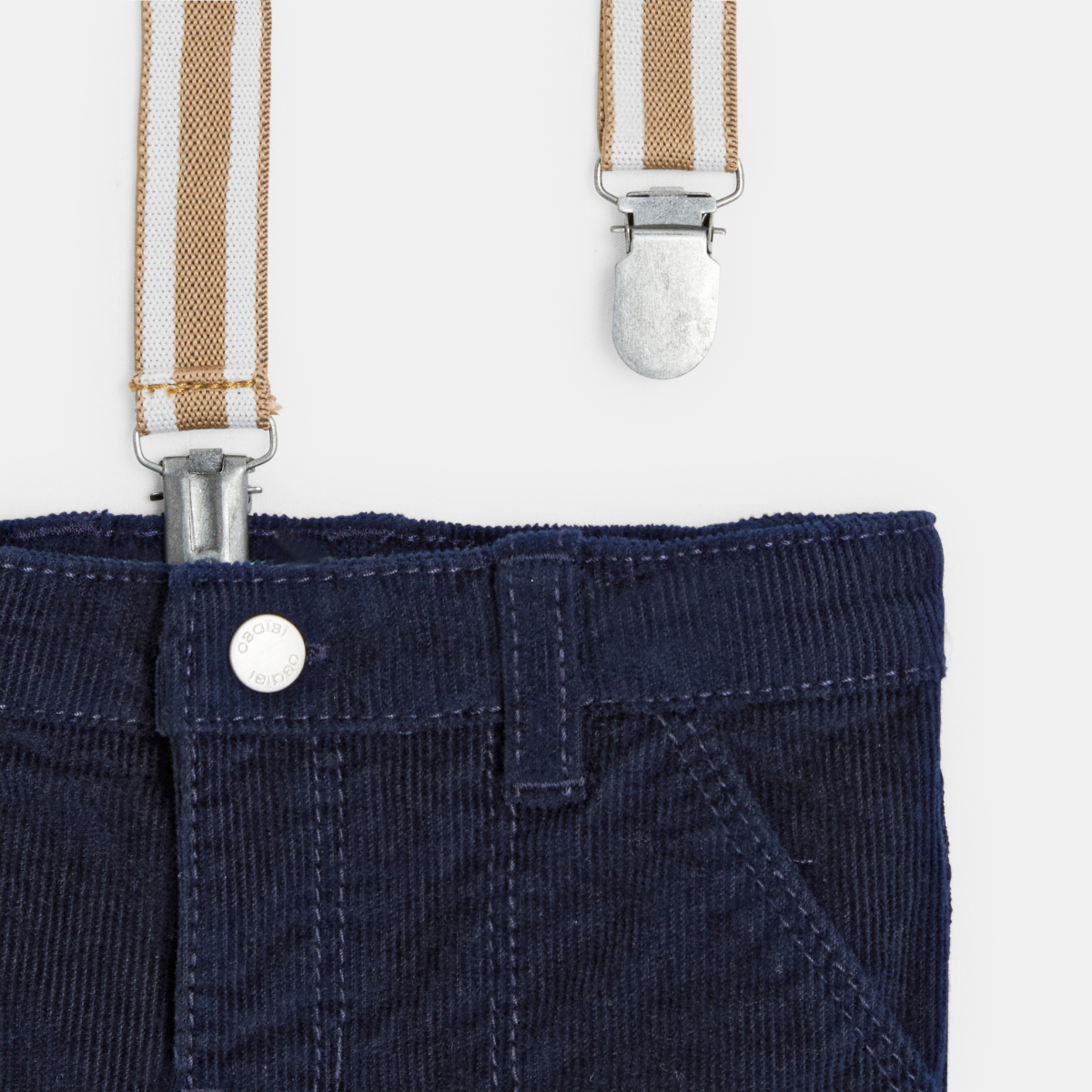 بنطال كوردروي للأطفال باللون الأزرق مع أشرطة