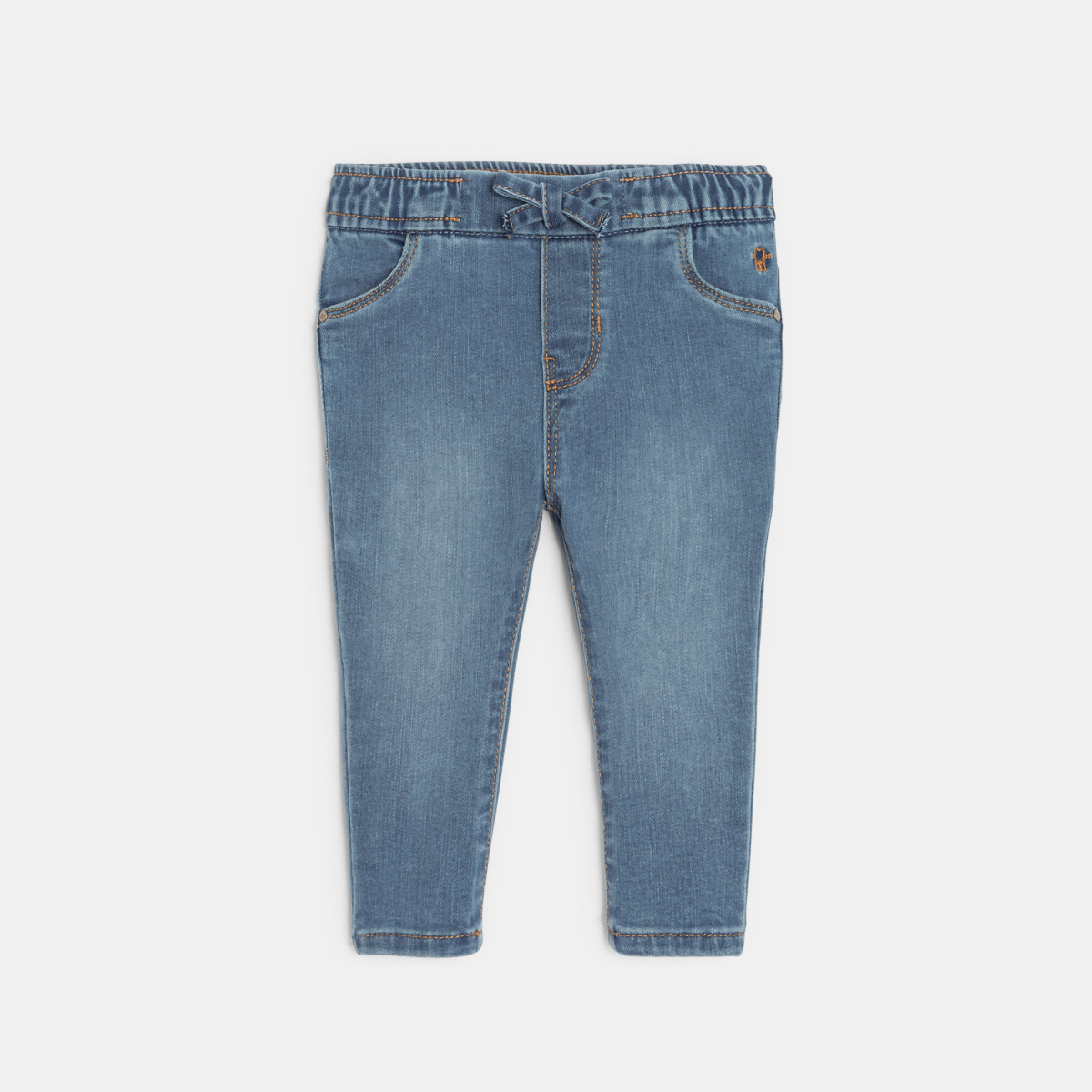 يجمع هذا البنطال الستريتش الناعم بين شكل البنطلون وراحة السراويل الضيقة. الخصر مسطح مطاطي مزيّن بفيونكة مميزة.