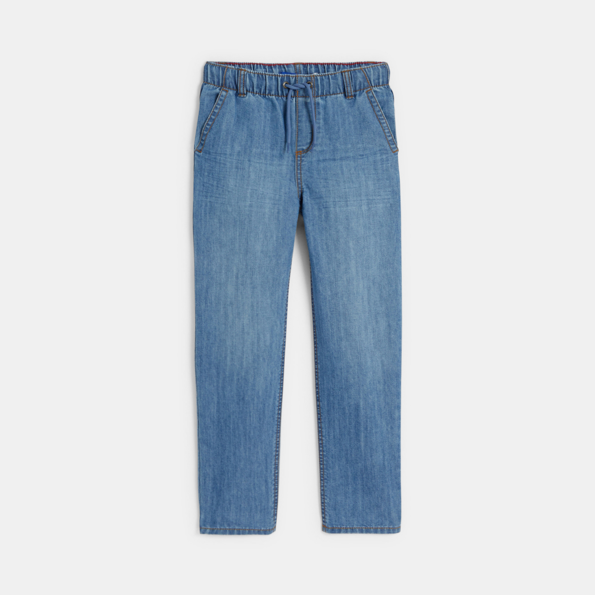 لمظهر رائع ومريح للأولاد: يوصى بارتداء هذا الجينز الخفيف للعب وللخروج والتجول في عطلات نهاية الأسبوع والاستمتاع بالعطلات! جينز أزرق باهت. خصر مطاطي قابل للتعديل، مع رباط شد. جيبان.