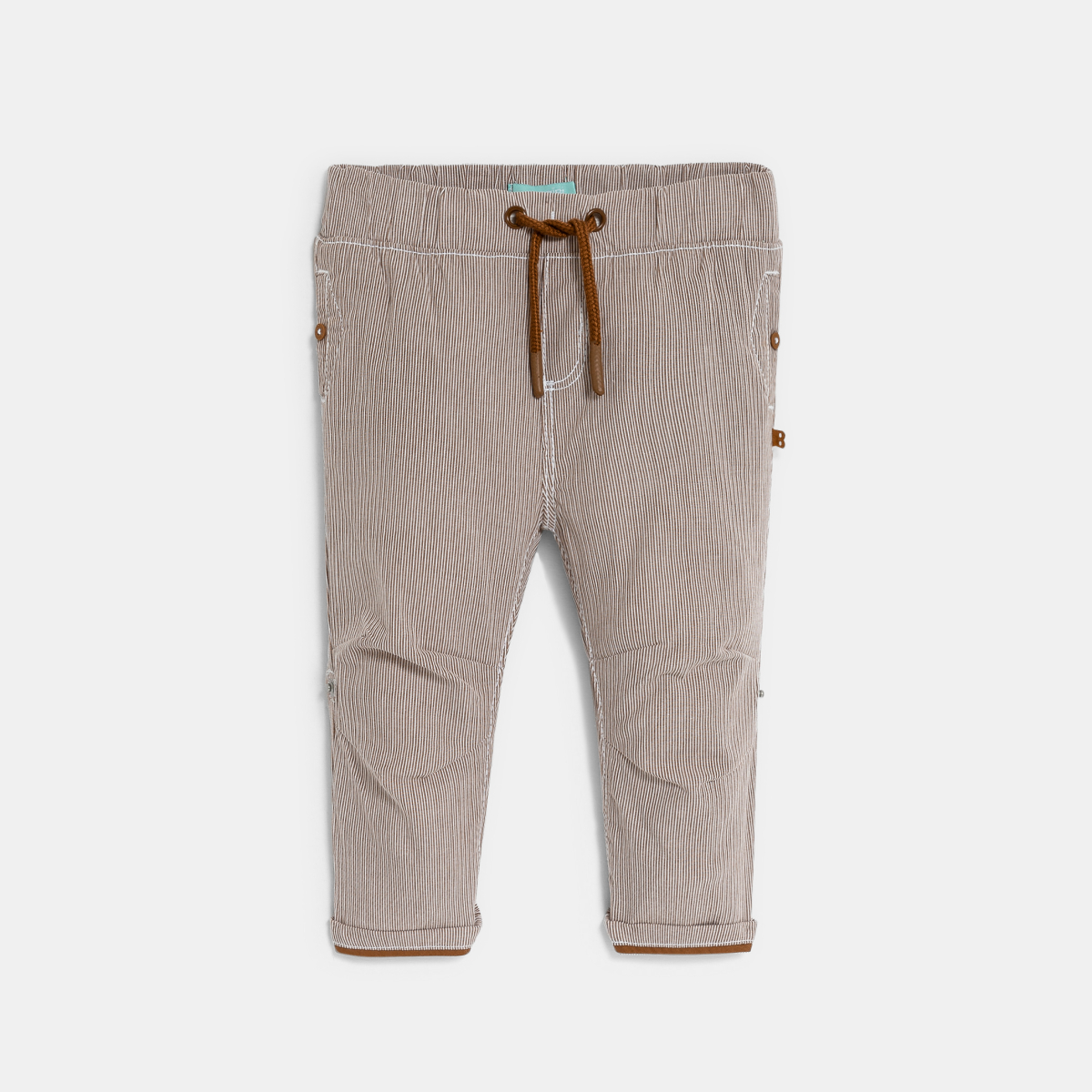 بنطال مقلّم بأرجل قابلة للطي باللون البني للأولاد الصغار