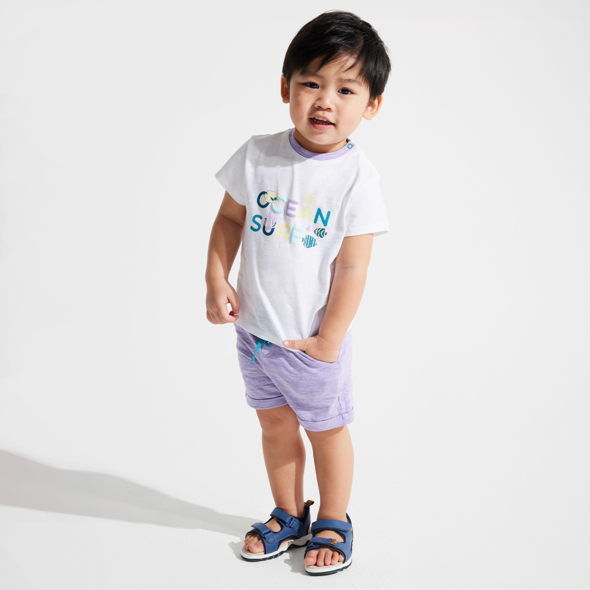 تيشيرت بطبعة المحيط وشورت محبوك فاخر باللون البنفسجي للأولاد الصغار
