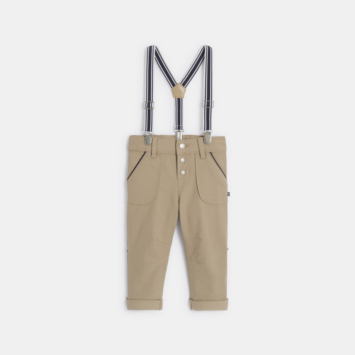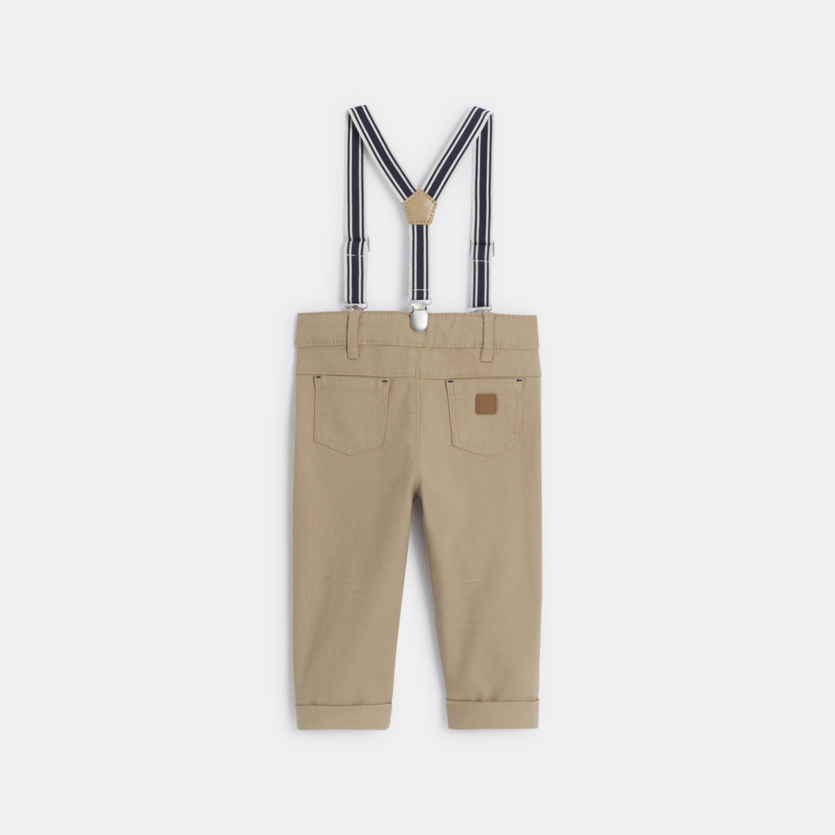 بنطلون (سروال) باللون البيج لين، بحمالات، ومصنوع من القطن الفاخر، مرن وقابل للتعديل، ويناسب الأطفال الصغار