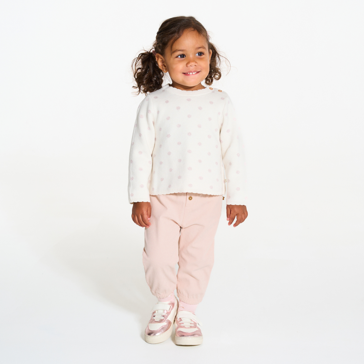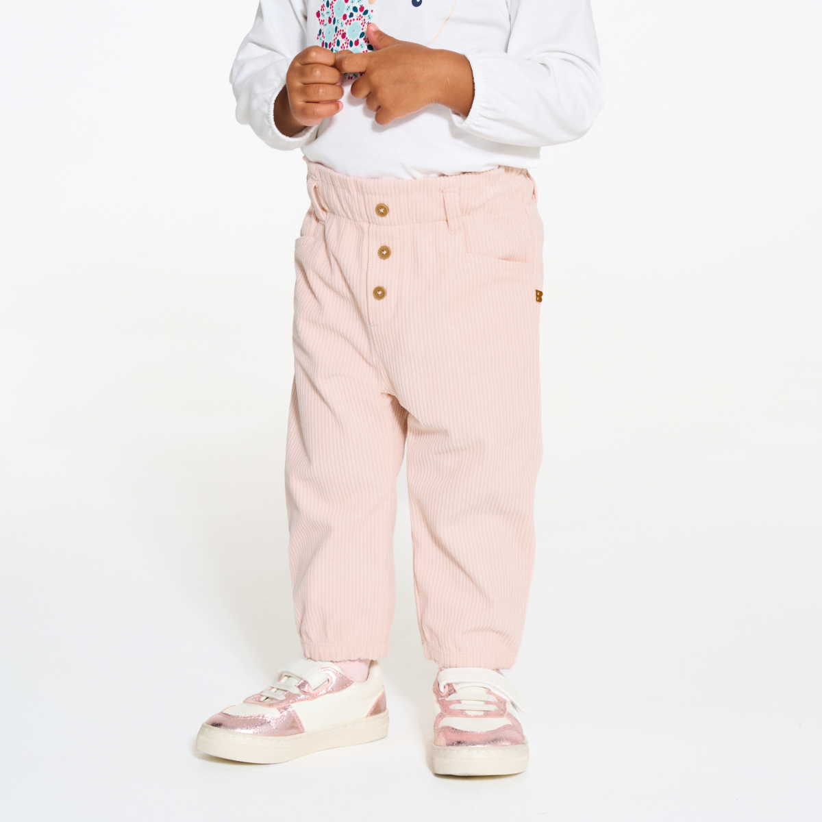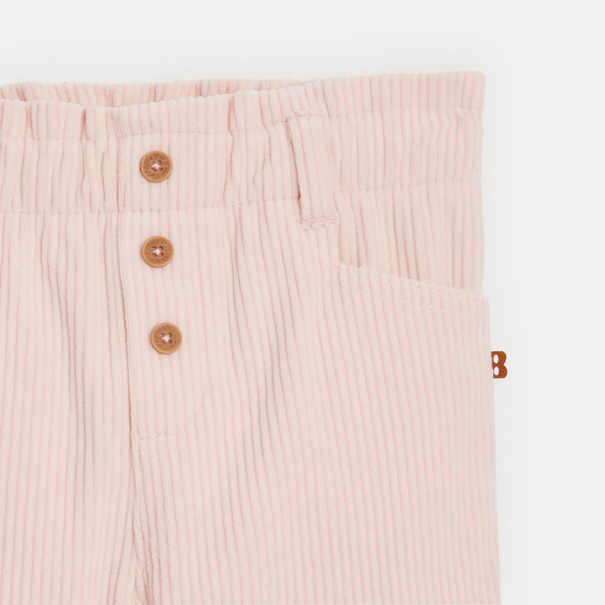بنطلون من الثوب المخملي المضلع، بمقاس مرن وباللون الوردي للفتيات الصغيرات.