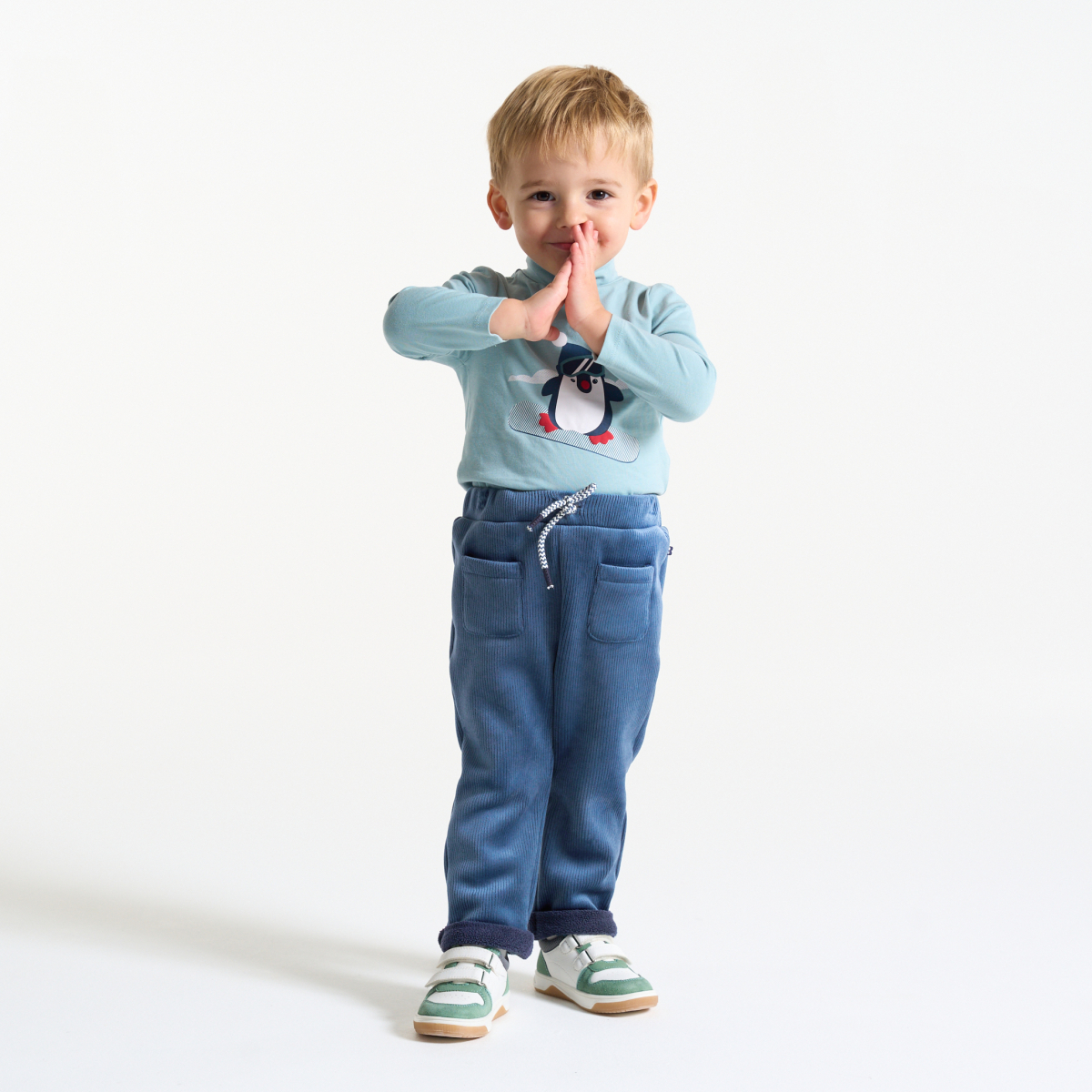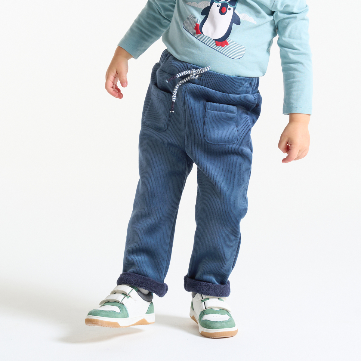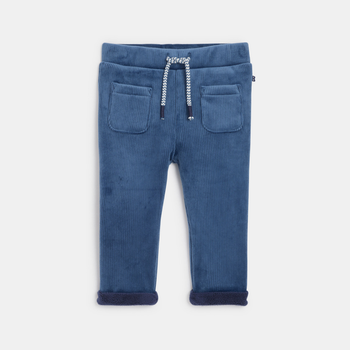 بنطلون من الثوب المخملي المضلع الوبري، باللون الأزرق للأولاد الرضع.