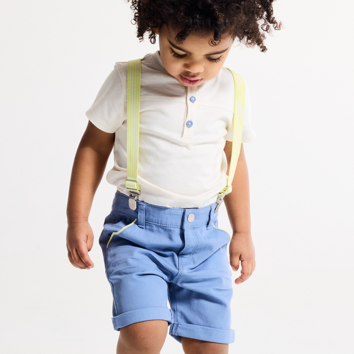 شورت بحمالات وتيشيرت أزرق اللون للرضيع الولد