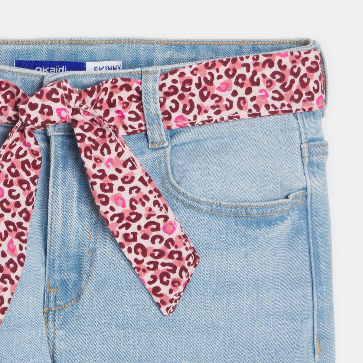 جميع الفتيات يرغبن في الحصول على بنطلون بقصة سكيني ! يمكن ارتداؤه مع أو بدون حزام لربطه دنيم ناعم ومرن بتأثير باهت على بعض الأجزاء مما يجعله سببًا في بهجة الفتيات! قصّة سكيني ضيقة. حلقات لتمرير الحزام. حزام برسوم مطبوعة (قابل للإزالة). يأتي بزر معدني وسحّاب. محيط الخصر قابل للضبط. 5 جيوب. لمسات نهائية بغرزة عُلوية.