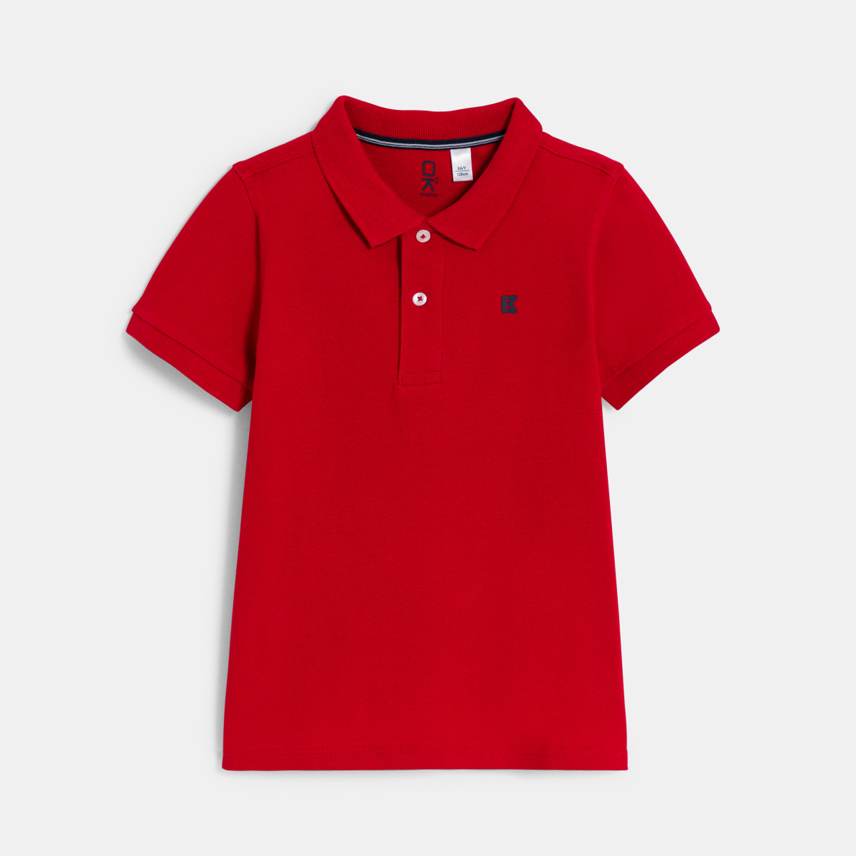 وصفي تيشيرت بولو للأولاد قطن بيكيه جيرسي، قابل للتمدد قليلاً. قصّة مستقيمة. ياقة بولو مع طية مضلعة، شريط بأزرار أمامية، سهل الارتداء. لمسات نهائية وتحيز على خط العنق في الداخل. شعار Okaïdi بحبر بارز على الصدر. أكمام قصيرة، وحواف مضلعة. الحافة السفلية مستقيمة.وأطول قليلاً في الخلف. فتحات جانبية. خياطة بنفس اللون.