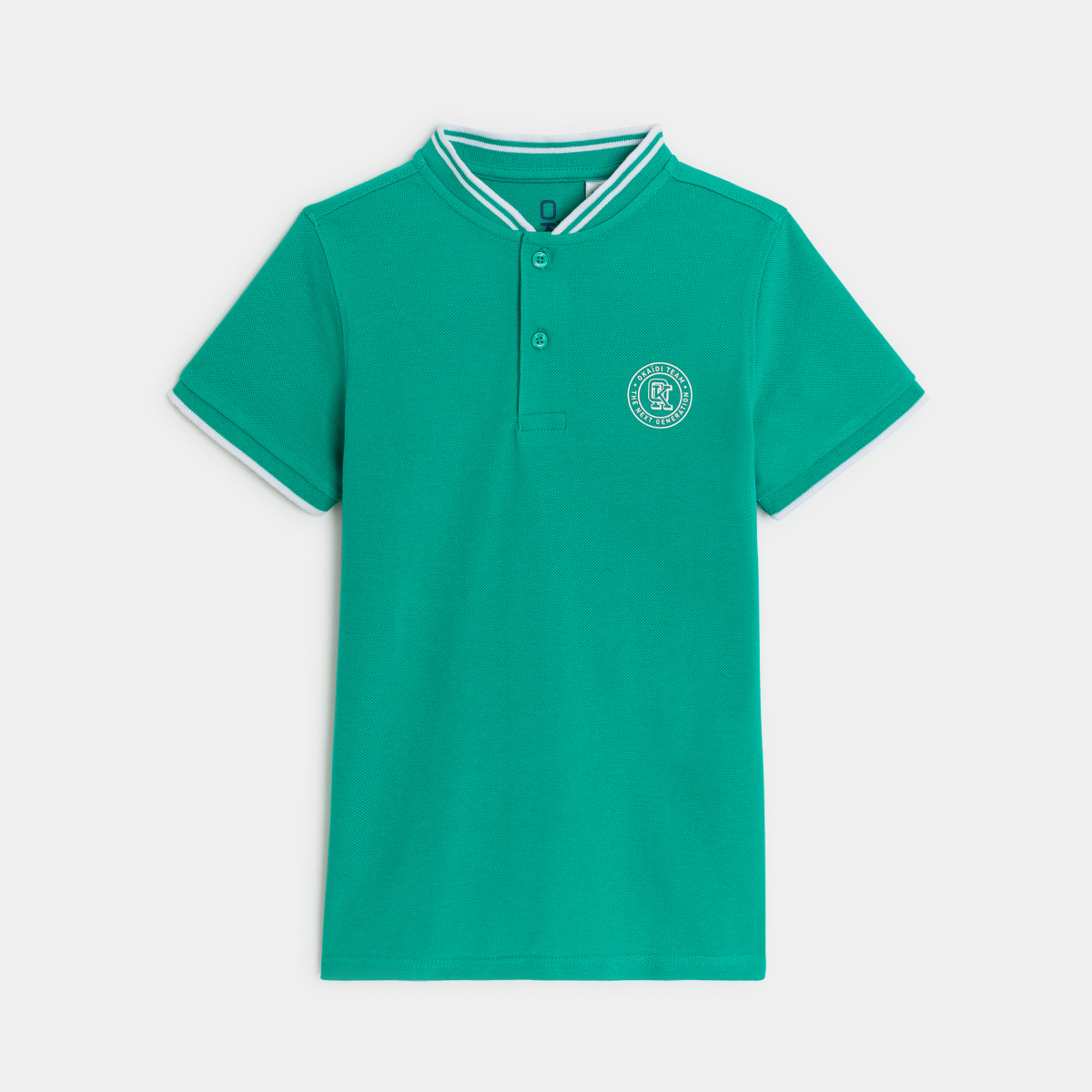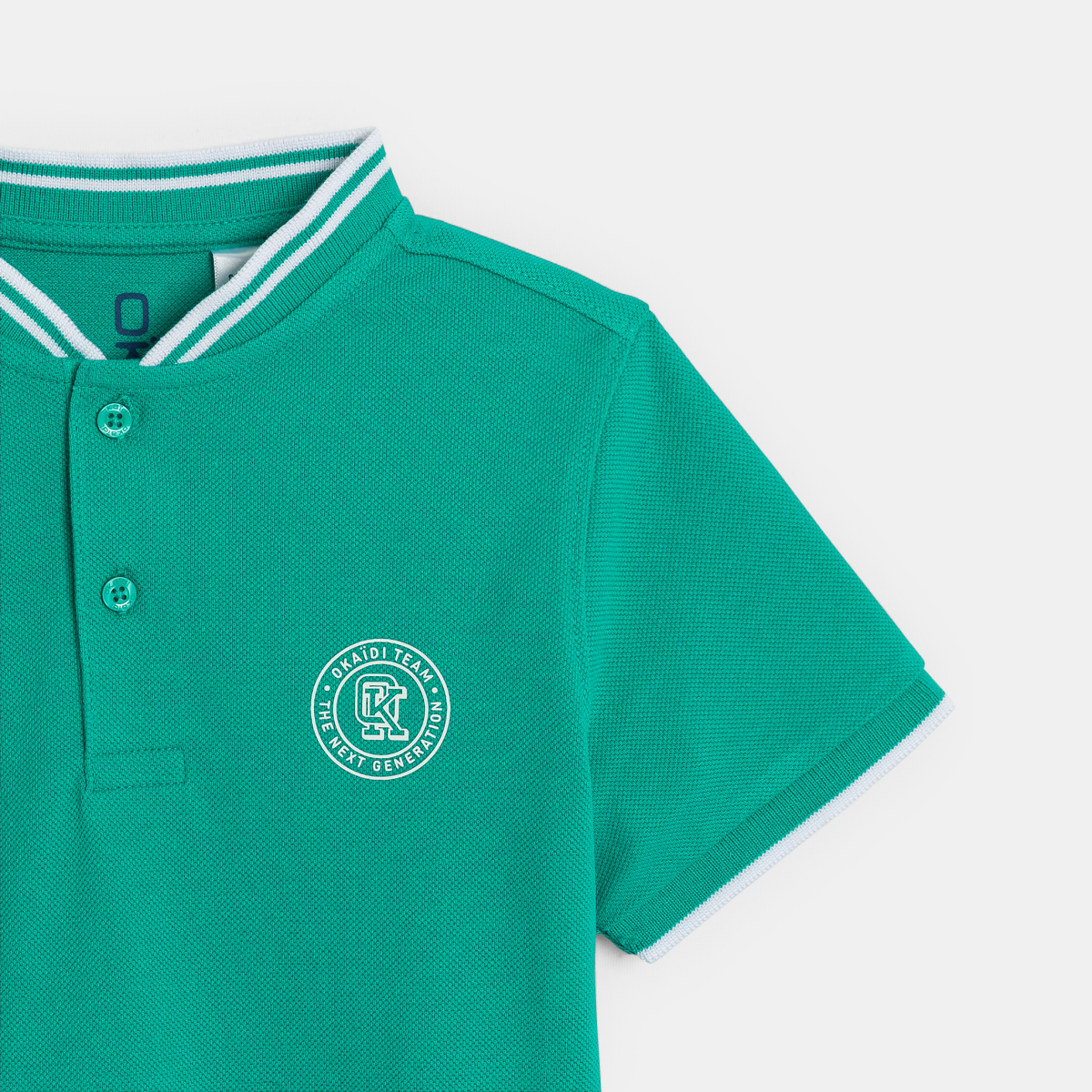 تيشيرت بأكمام قصيرة أخضر من قماش الجيرسيه المضلع للأولاد