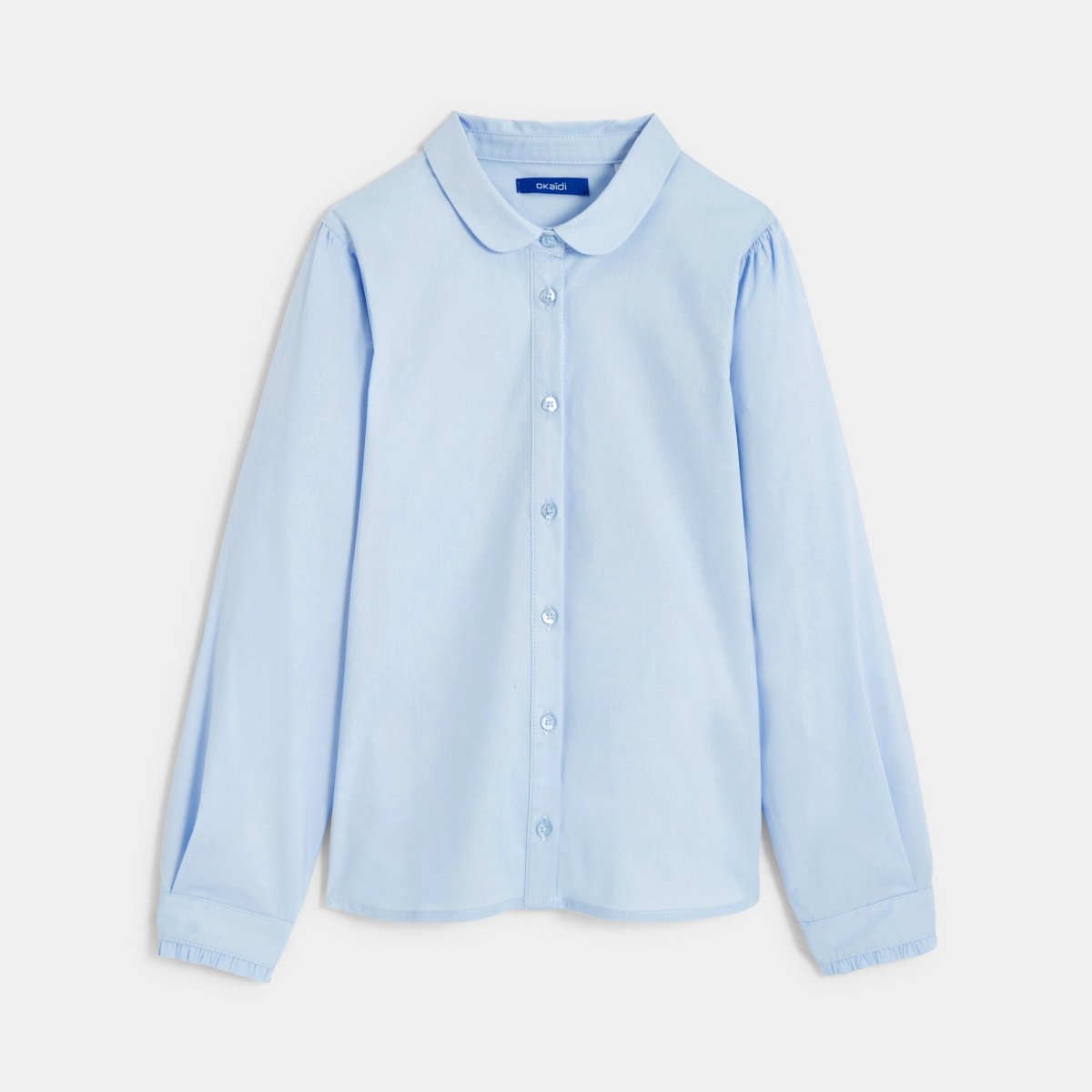 قميص للفتيات باللون الفيروزي السادة بياقة بيتر بان