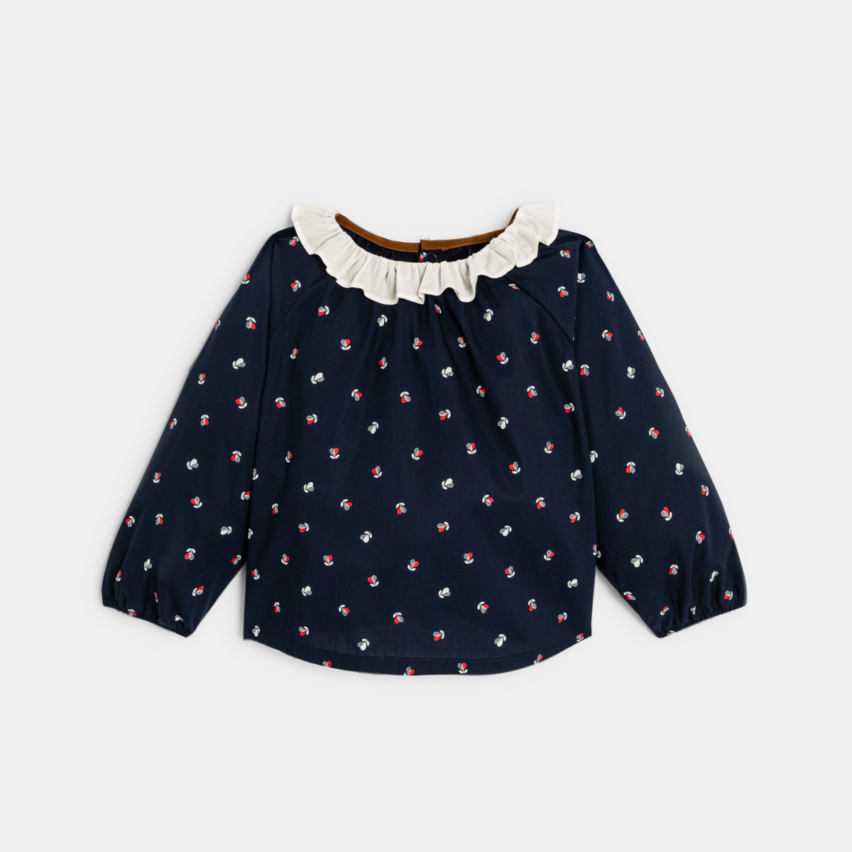 نحن نحب نعومة وراحة هذه البلوزة بنمط الأزهار العتيق قليلاً. الأكمام الطويلة والياقة المكشكشة ستجذب جميع الأطفال الصغار. بفضل الضغوط الموجودة في الظهر، يصبح مرور الرأس سهلاً.