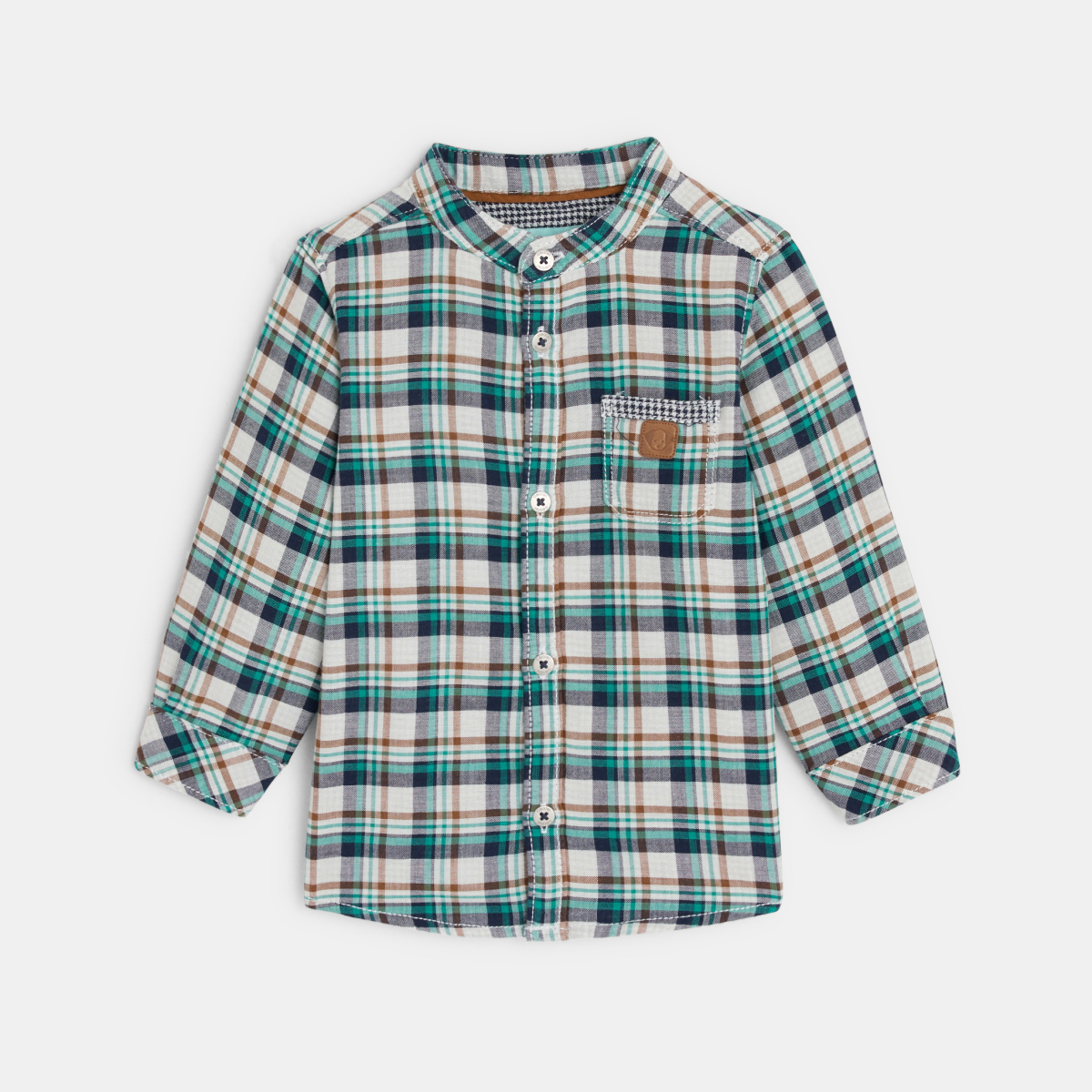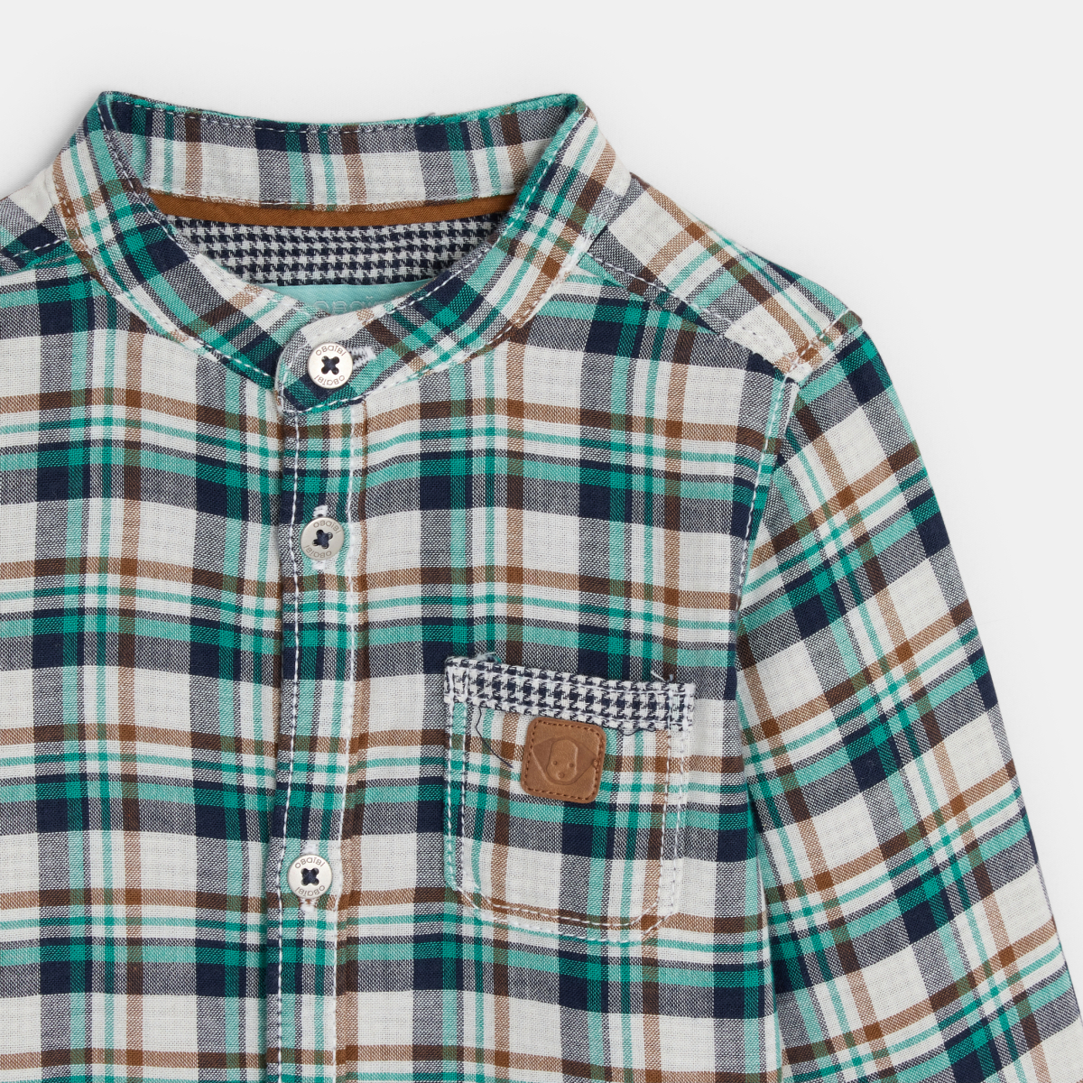 وصفي يُضفي هذا القميص القطني الناعم والخفيف لمسة أصيلة على خزانة ملابس أطفالك. مربعات وأكمام طويلة وياقة صغيرة على قاعدة بأزرار، لإرضاء الجميع!
