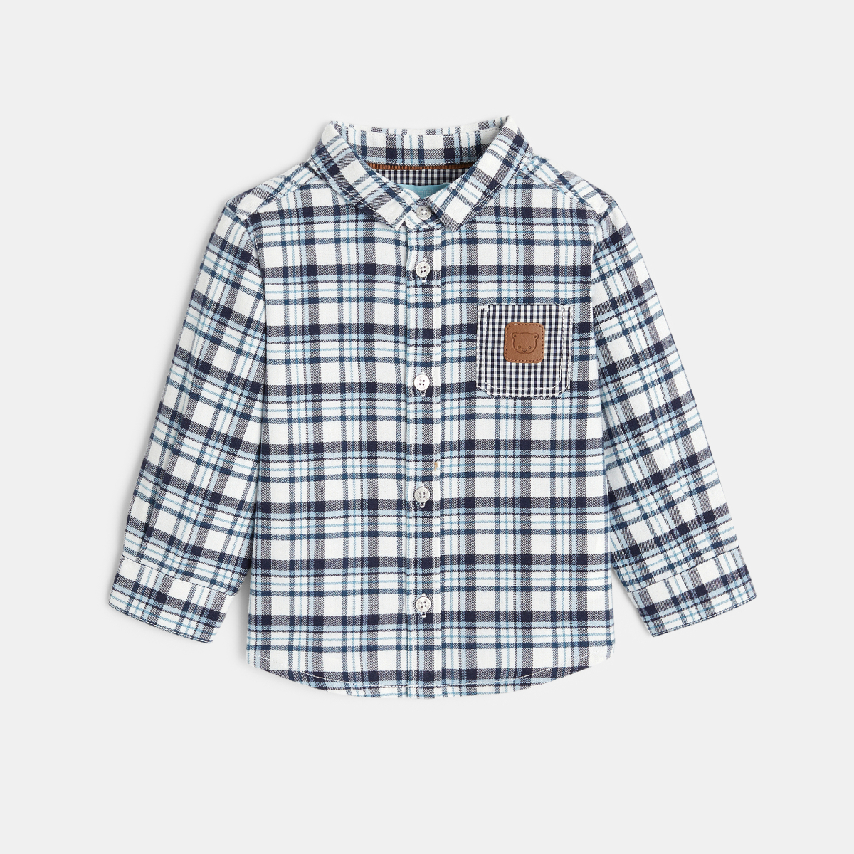 قميص مربعات دافئ، أزرق، ولادي رُضع