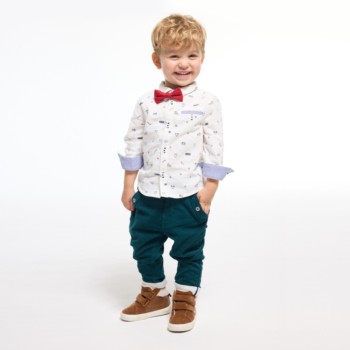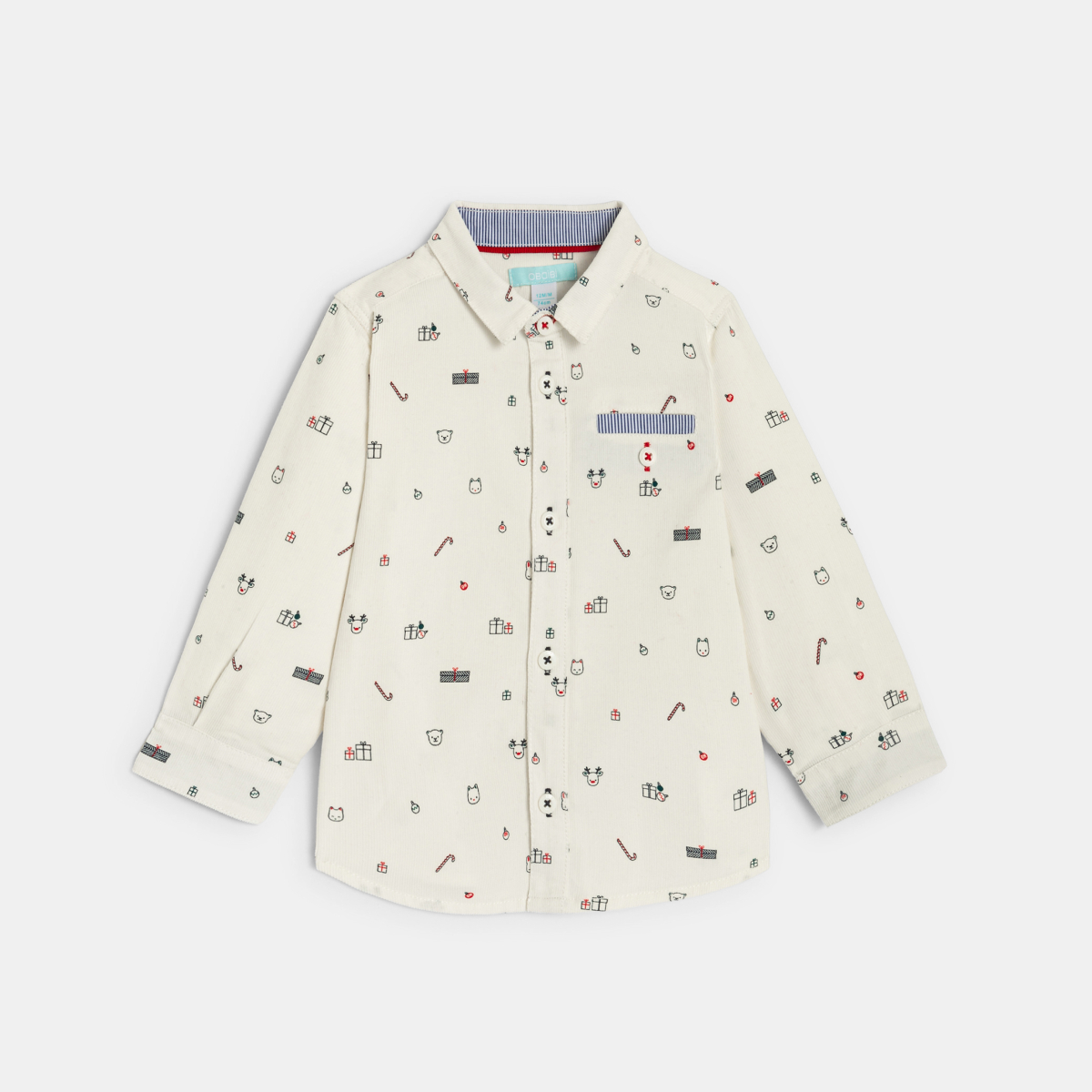يناسب هذا القميص الطويل الأكمام والأصلي بطبعته التي تذكرنا بعطلات نهاية العام، الأولاد بشكل أنيق. بموديل مخملي بتضليعة قصيرة. أزرار في الأمام وجيب صغير على الصدر.