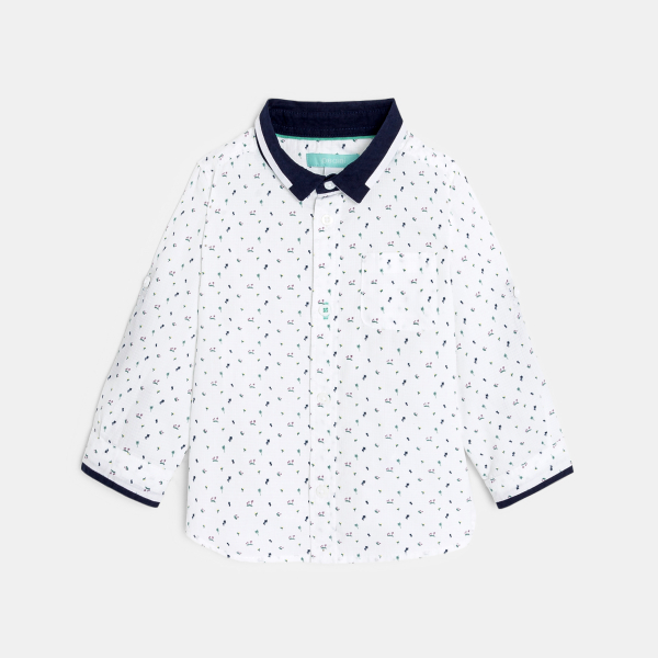 قميص قطن مزخرف بطبعة شجر النخيل قابل للتعديل، باللون الأبيض للأولاد الصغار