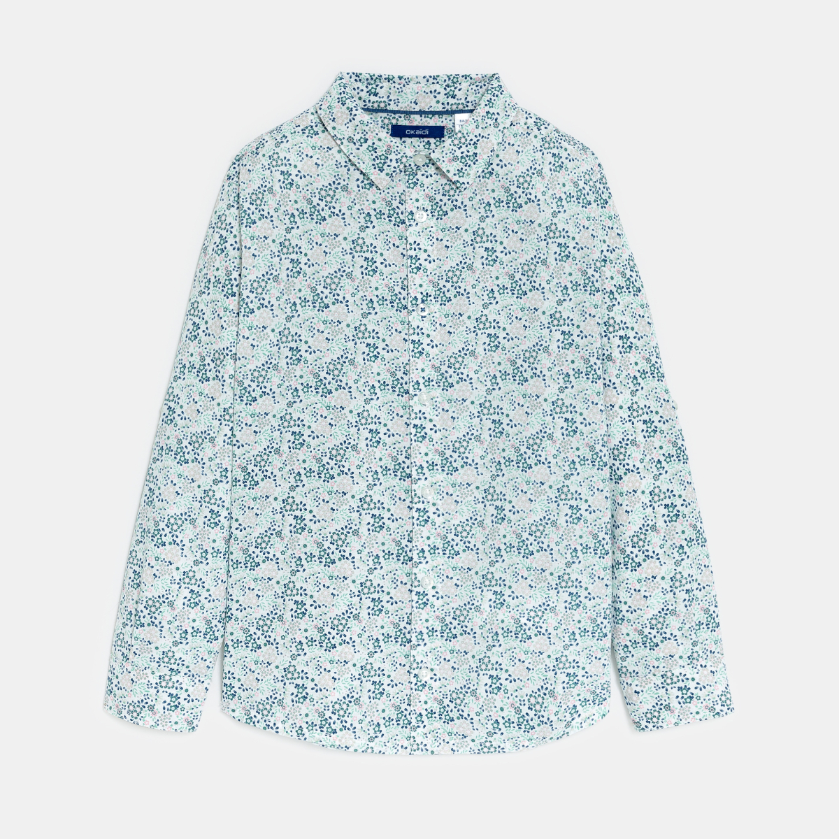 يتميز هذا القميص بنسيج مصنوع من مزيج القطن والكتان، وبطبعة زهور الباستيل الصغيرة التي تضفي لمسة من الانتعاش والحيوية على مظهر الأولاد. قصّة مستقيمة. ياقة قميص. الفتح بأزرار. أكمام طويلة قابلة للطي بعروات وأزرار، أساور بأزرار. الحافة السفلية مستديرة. لمسات نهائية من نسيج بيكيه.