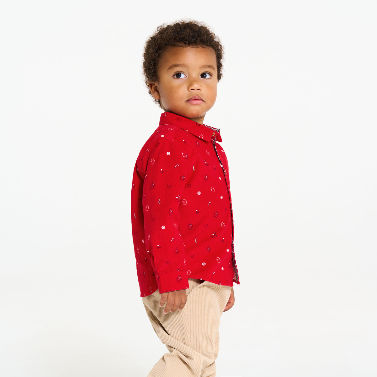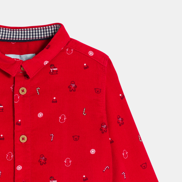 مثالي لموسم الأعياد، حيث يأتي هذا القميص المخملي ذو الأزرار بنقشة رجل الثلج والبسكويت والدببة لإسعاد الأولاد. شكل أنيق يُضفي أصالة على أي زي.
