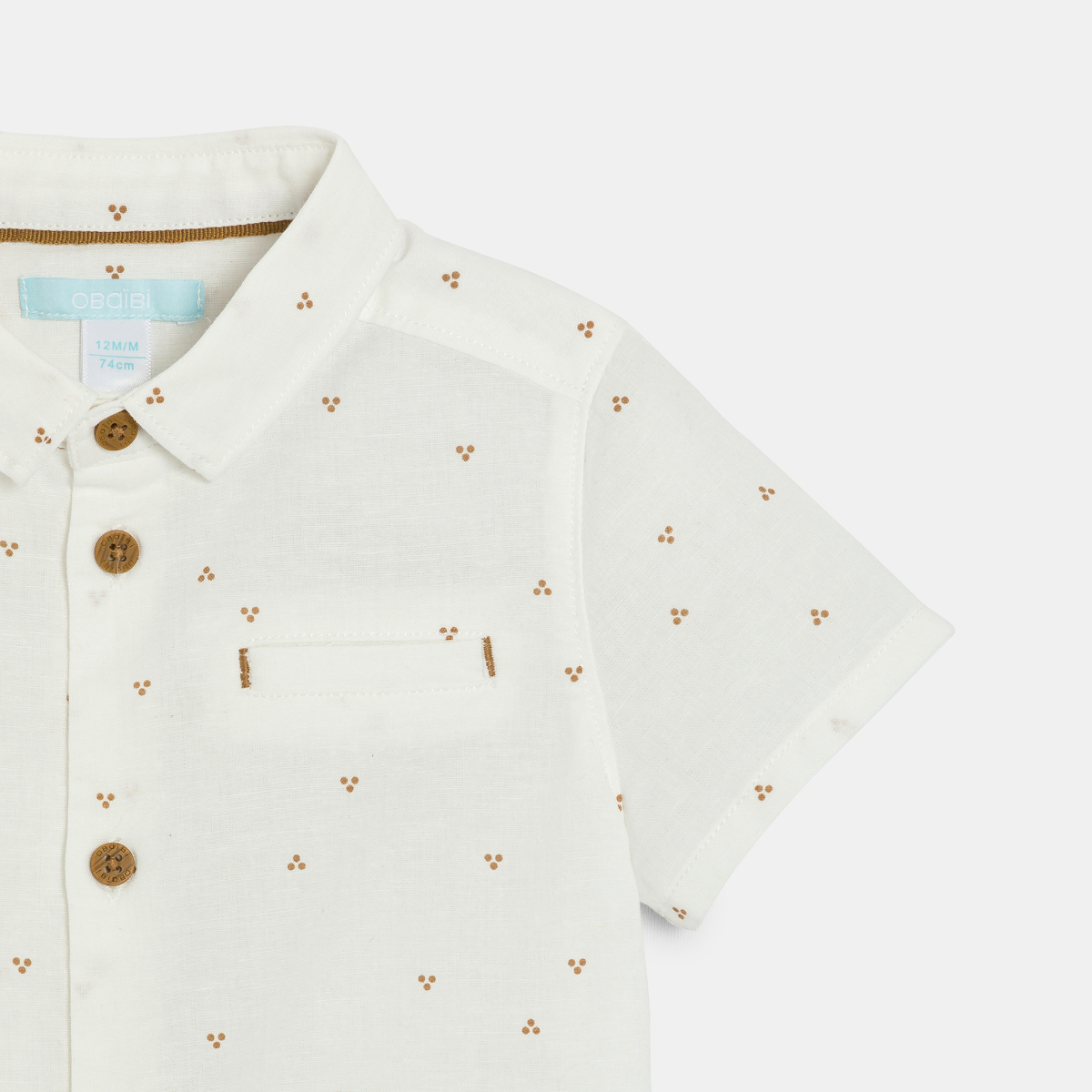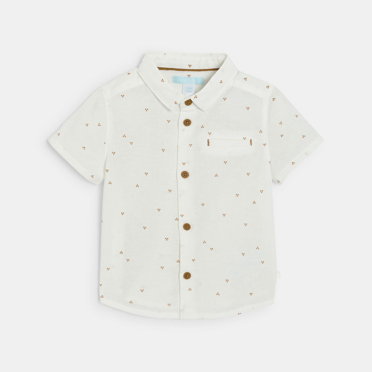 قميص بأكمام قصيرة مطبوع أبيض لطفل رضيع