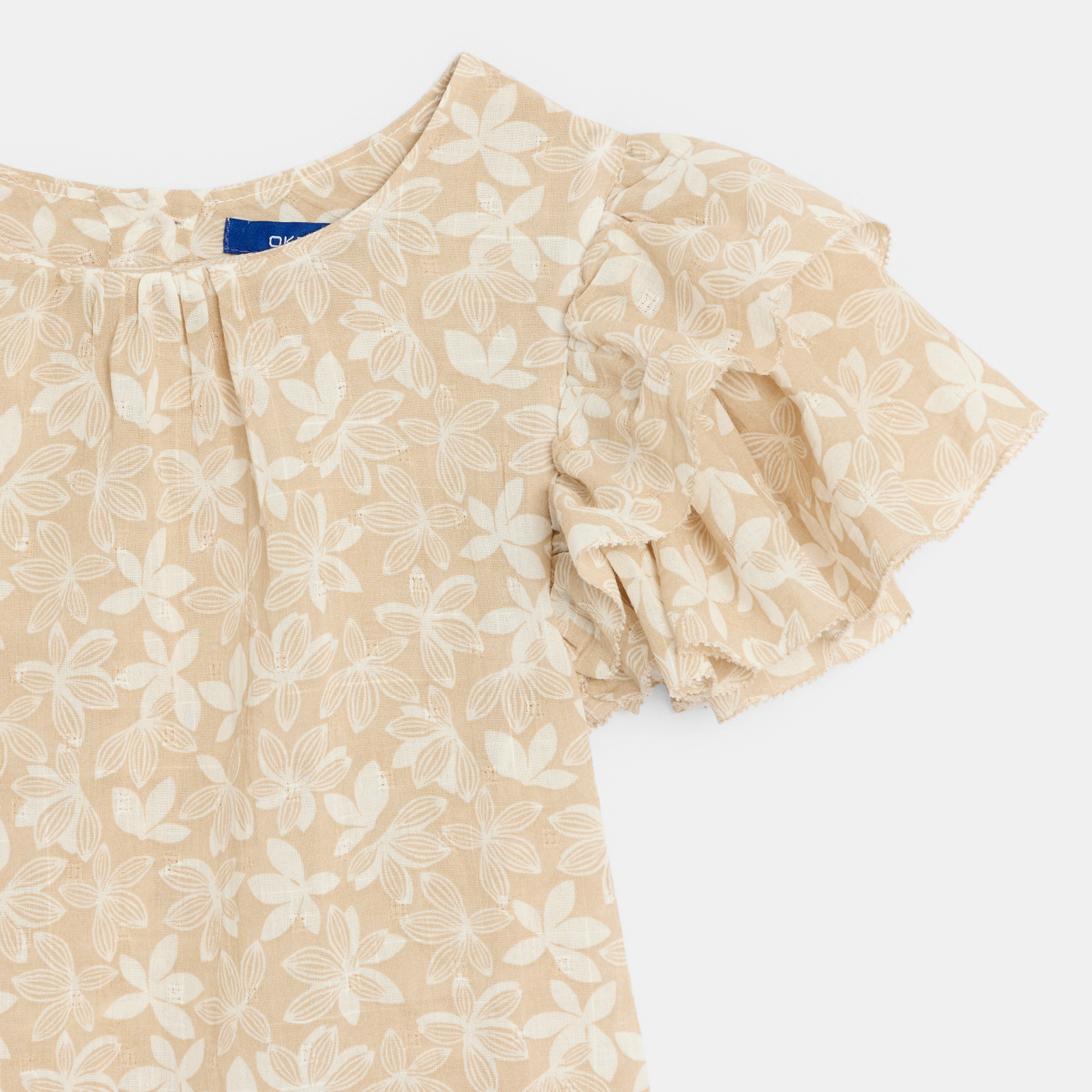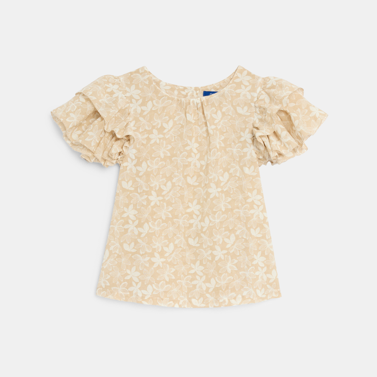 بلوزة مطبوع عليها بأكمام مكشكشة اللون بيج للفتيات