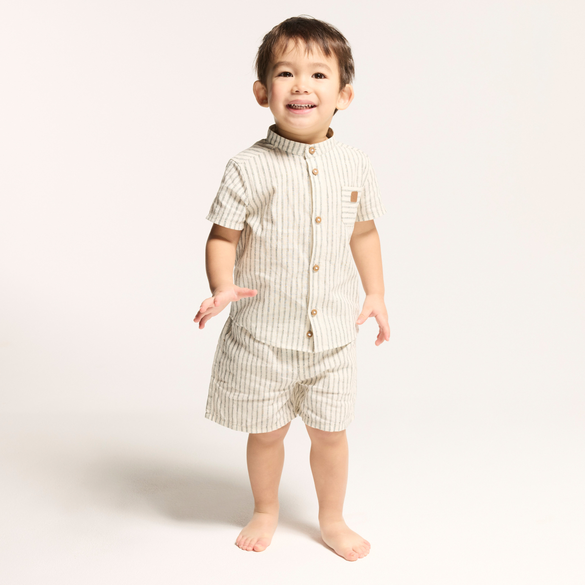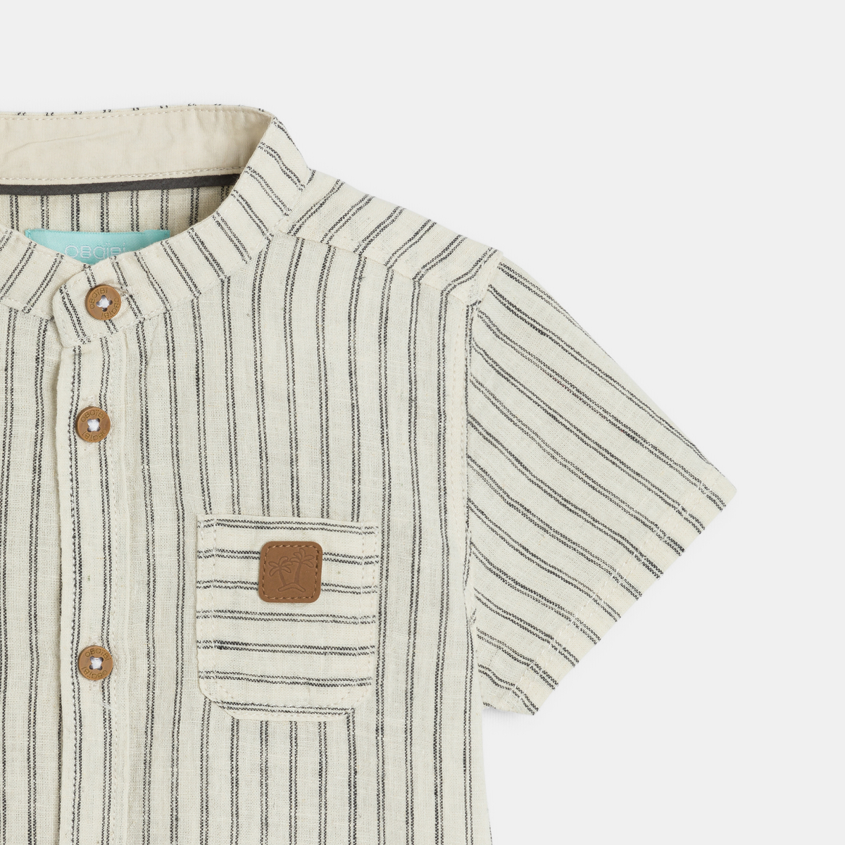 قميص كتان وقطن مقلم، أبيض اللون، لطفل رضيع
