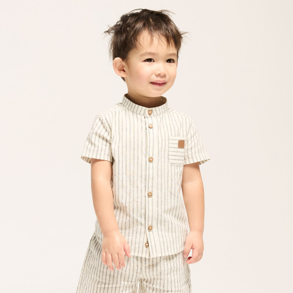 قميص كتان وقطن مقلم، أبيض اللون، لطفل رضيع