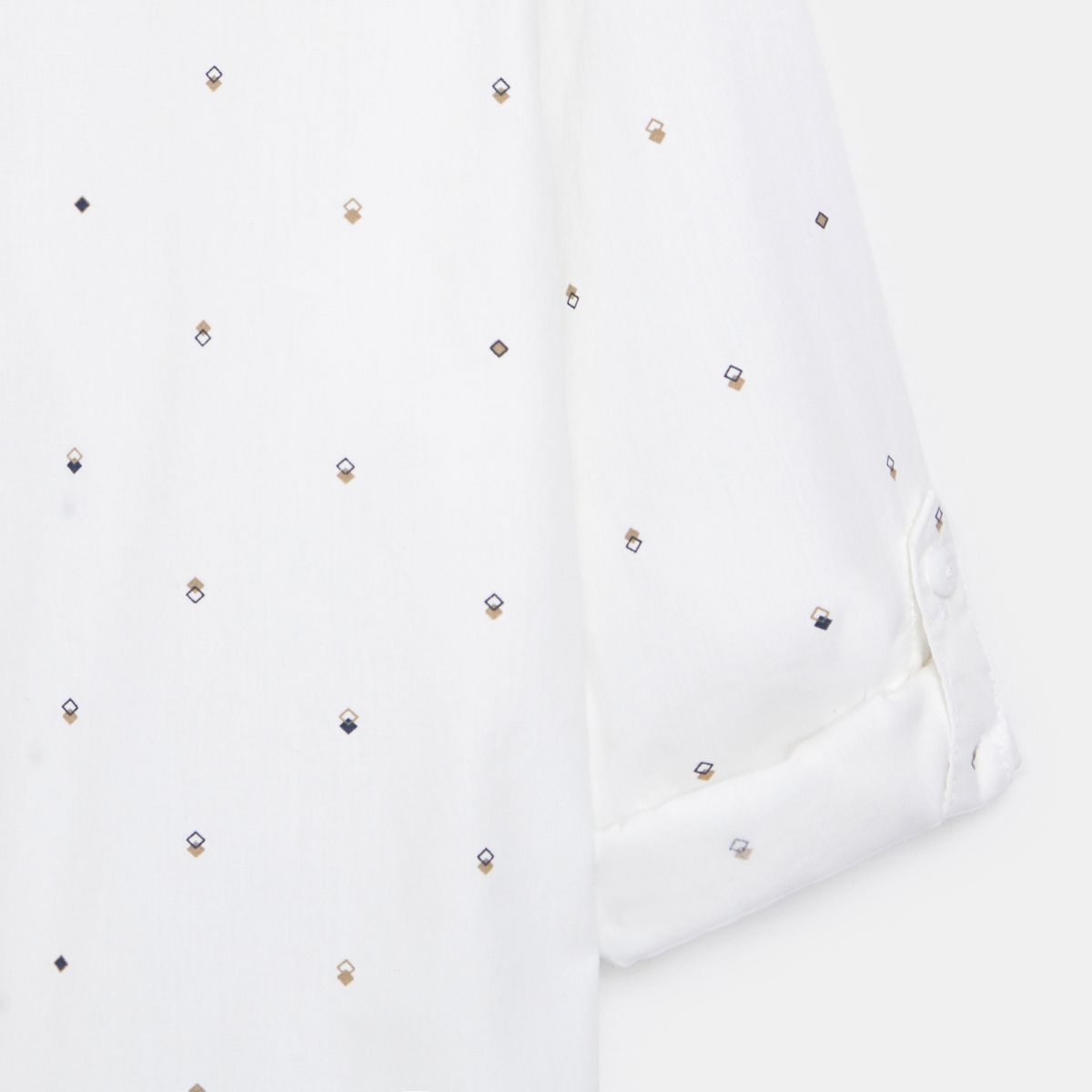 قميص بنقوش صغيرة مطبوعة، أبيض اللون للأولاد