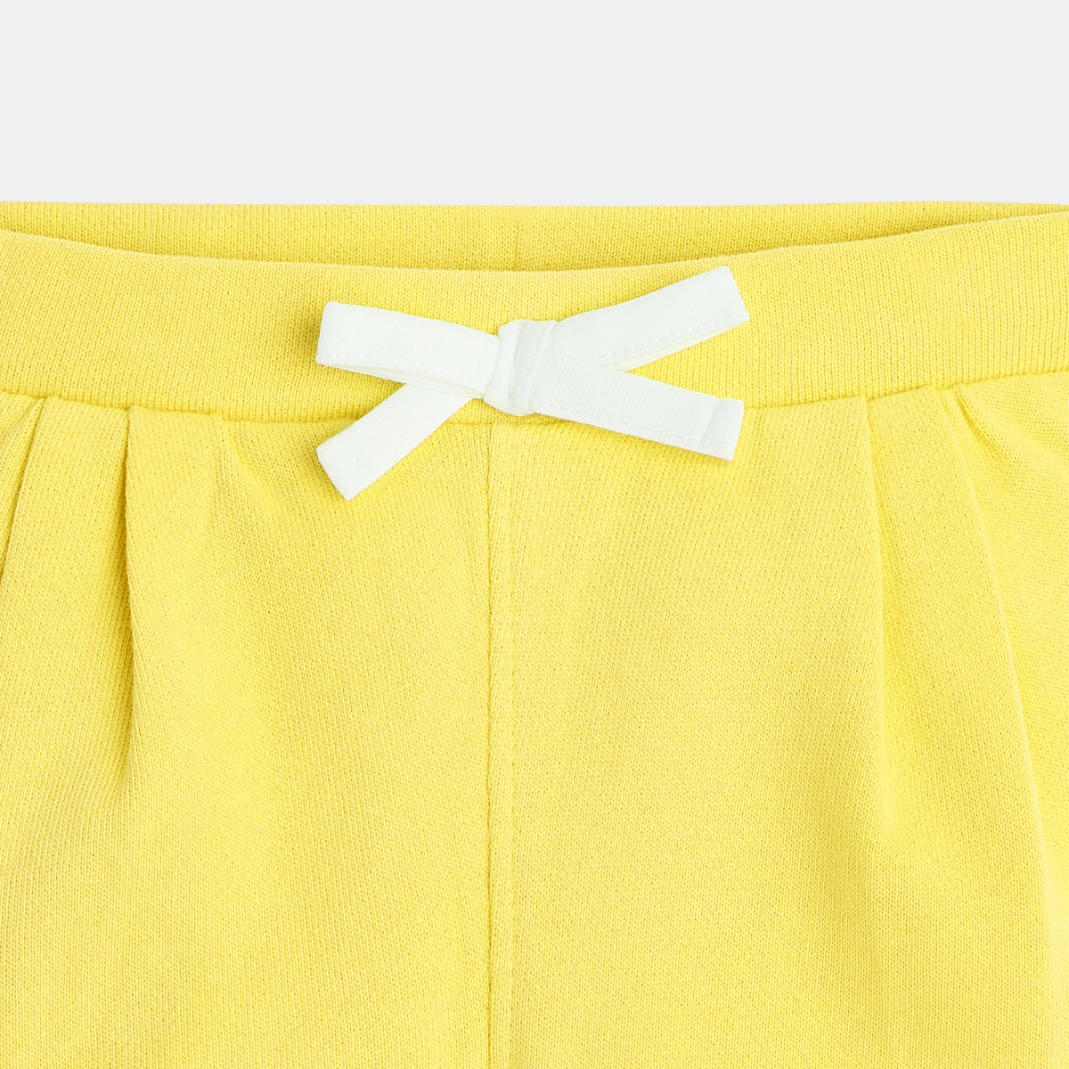 شورت بخصر مطوي من الصوف الناعم باللون الأصفر للفتيات الصغيرات