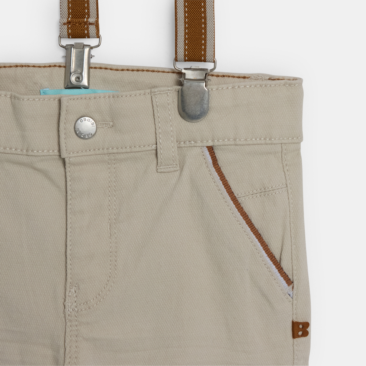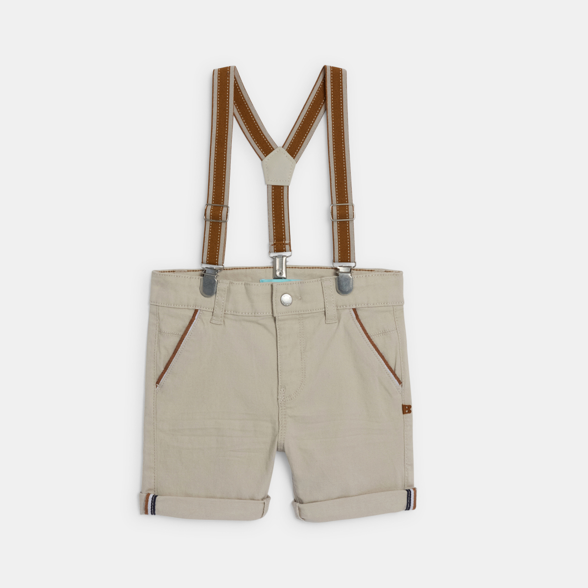 شورت برمودا بحمّالات، باللون البيج، للأطفال الرضع.