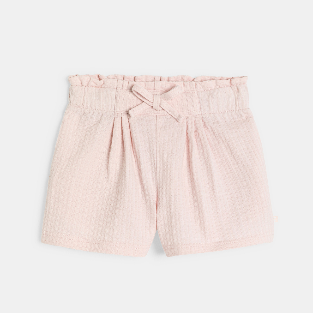 شورت بخصر عالٍ من القطن الفاخر، اللون وردي، للطفلة الصغيرة