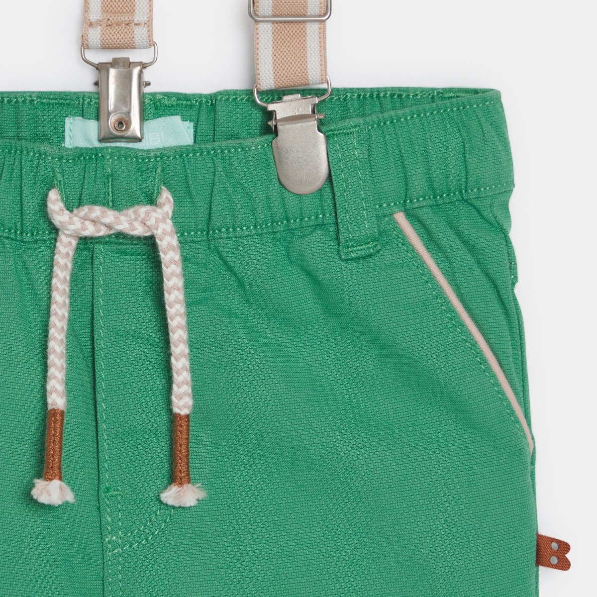 شورت برمودا قطني بحمالات من القطن الفاخر أخضر اللون للصبي الصغير