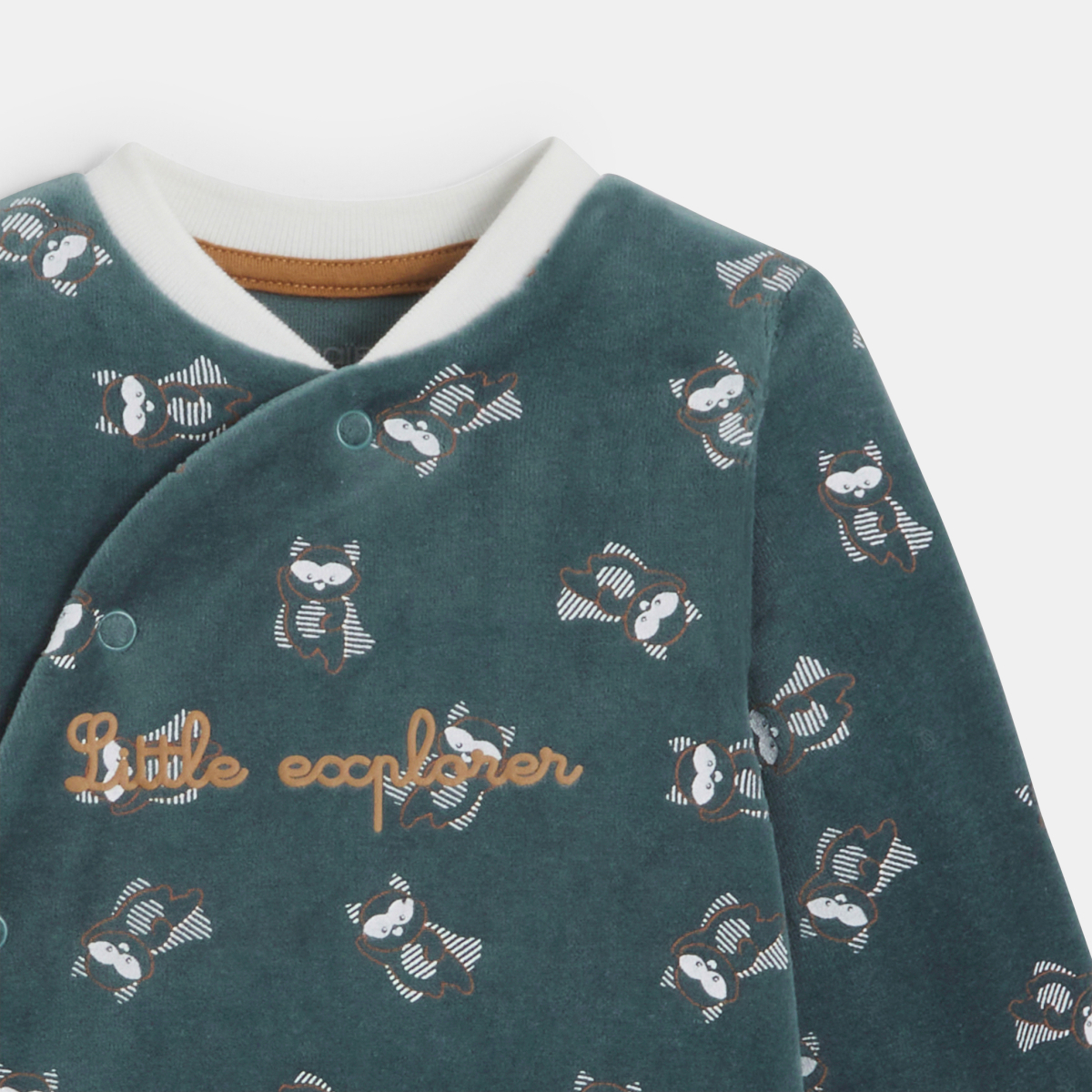 ينعم المستكشفون الصغار بالدفء والراحة في الليالى الباردة في هذه البيجاما المخملية الناعمة من قطعة واحدة. مزودة بأزرار كبس في الأمام حتى يمكنك تلبيس طفلك وهو مستلقيًا على ظهره، مع طبعات وتطريز في المقدمة.