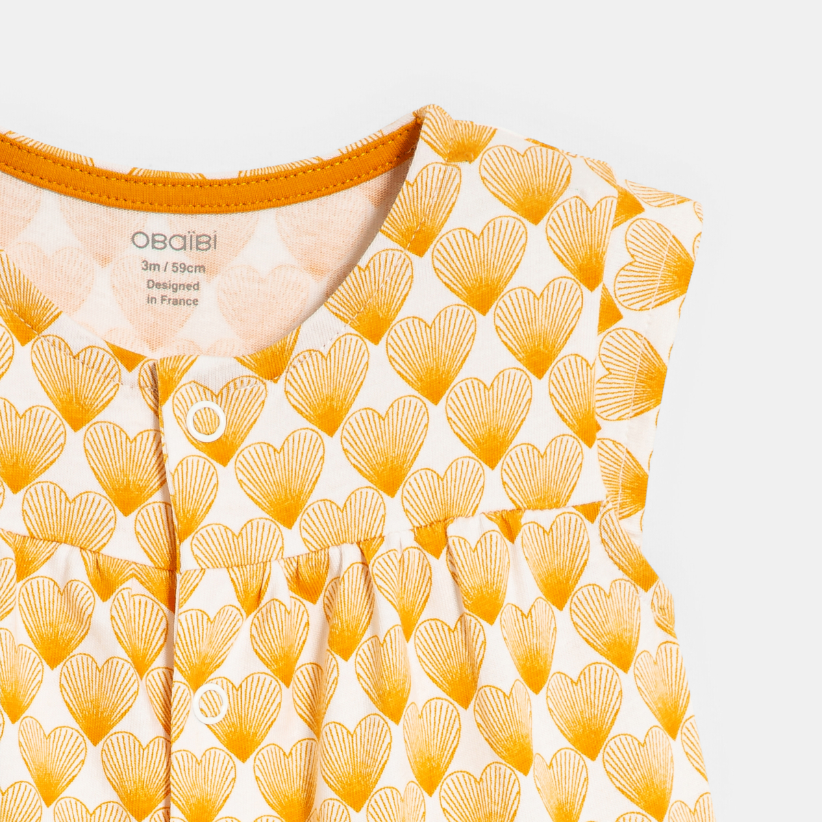 جمبسوت قصيرة بطبعة قلوب، باللون الأصفر للفتيات الصغيرات