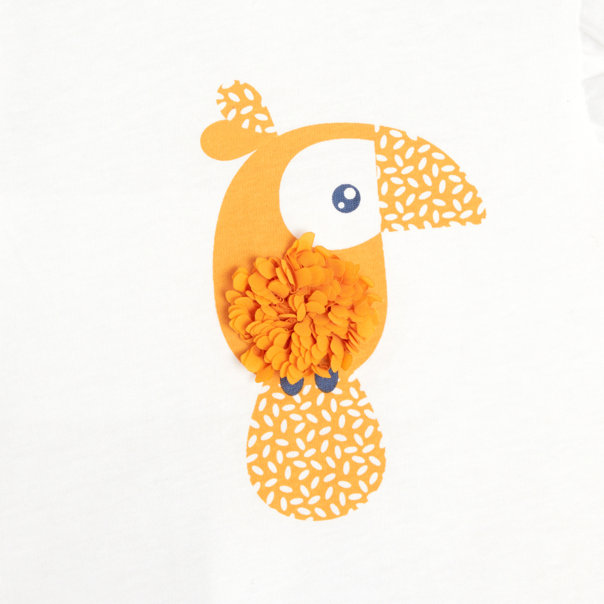 بيجاما قصيرة بطبعة طائر باللون الأصفر للفتيات الصغيرات