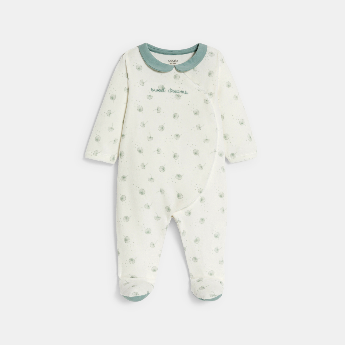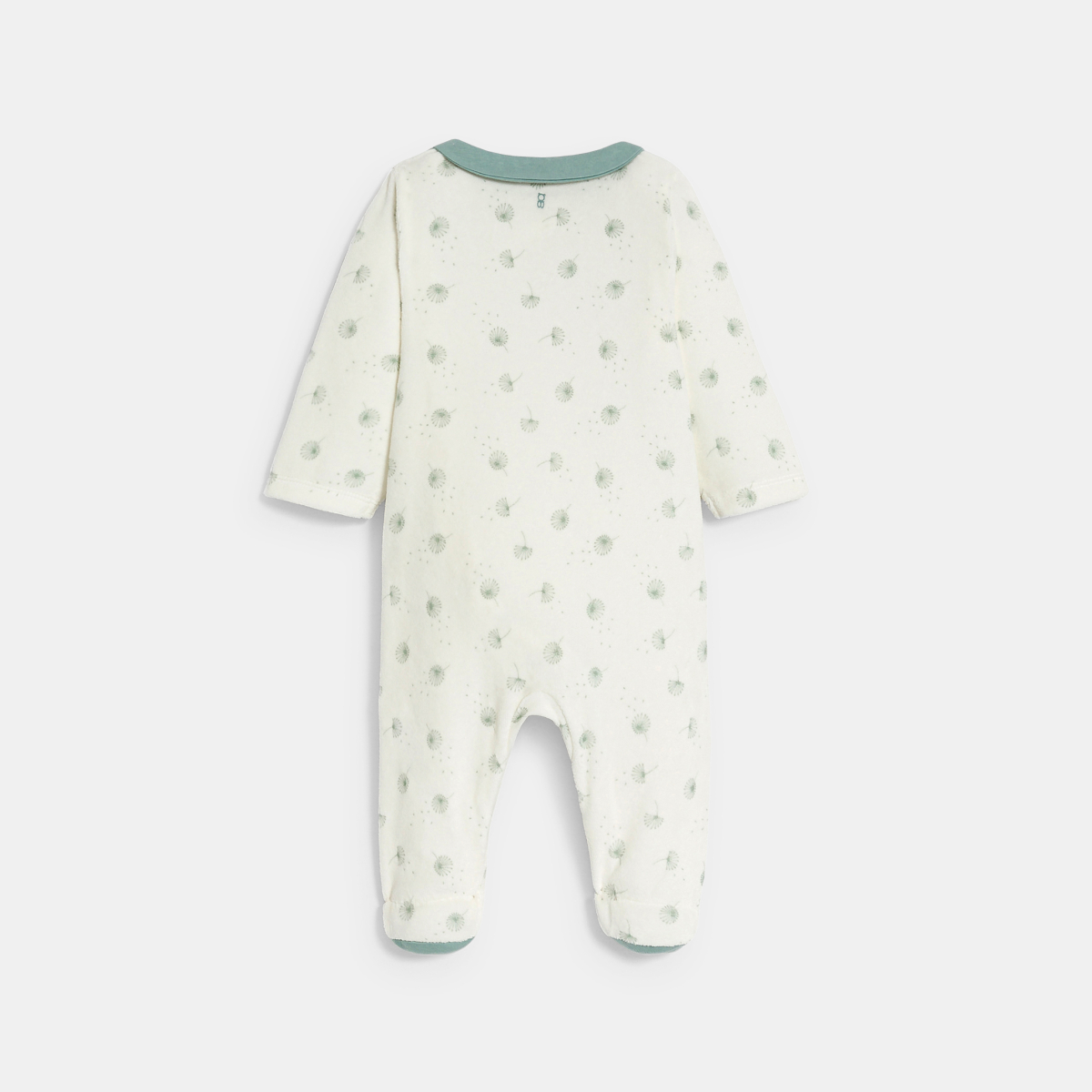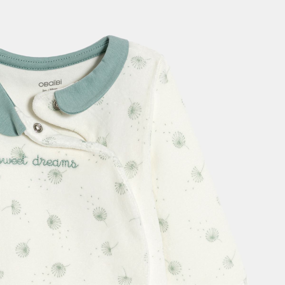 تعتبر هذه البيجاما، المكونة من قطعة واحدة، والمنمقة برسوم نبتة الهندباء، قطعة أساسية في خزانة ملابس الفتاة منذ الأيام الأولى. مصنوعة من ثوب مخملي ناعم ورقيق ودافئ، وتحيط الصغار بالراحة. الفتح من الأمام بأزرار كبس لسهولة الارتداء.