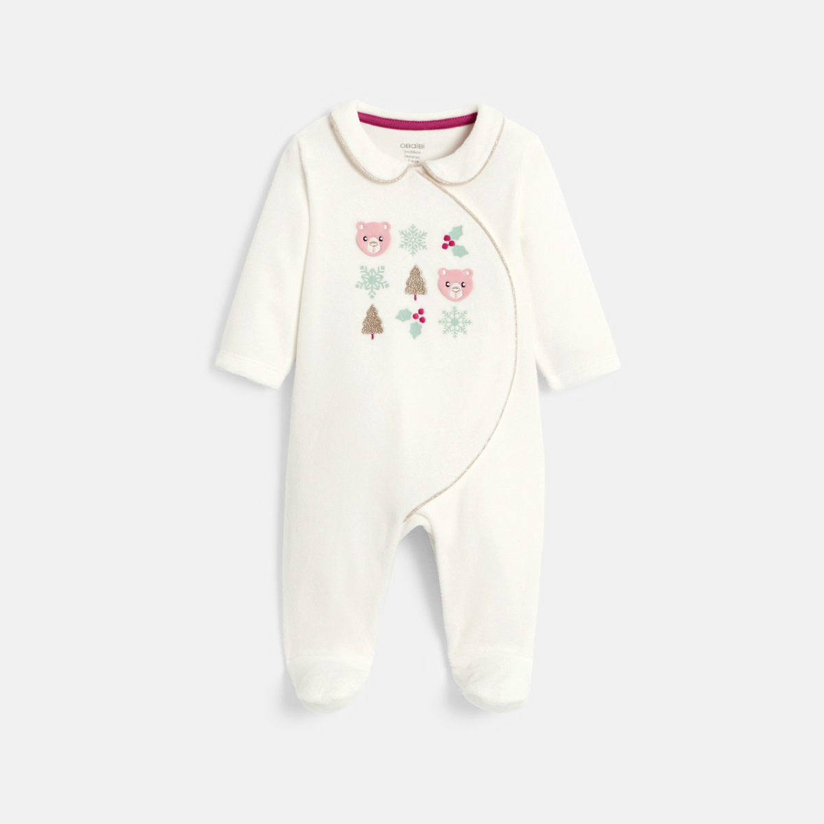 وصفي ينعم الأطفال الصغار بليالي هادئة، حيث تحيطهم هذه البيجامات المخملية الدافئة والناعمة بالراحة. مثالية لليالي الشتاء الباردة، تحب الفتيات تطريزاتها النابضة بالألوان. الفتح بأزرار كبس من الأمام لترتديه الصغيرات بسهولة على الظهر.