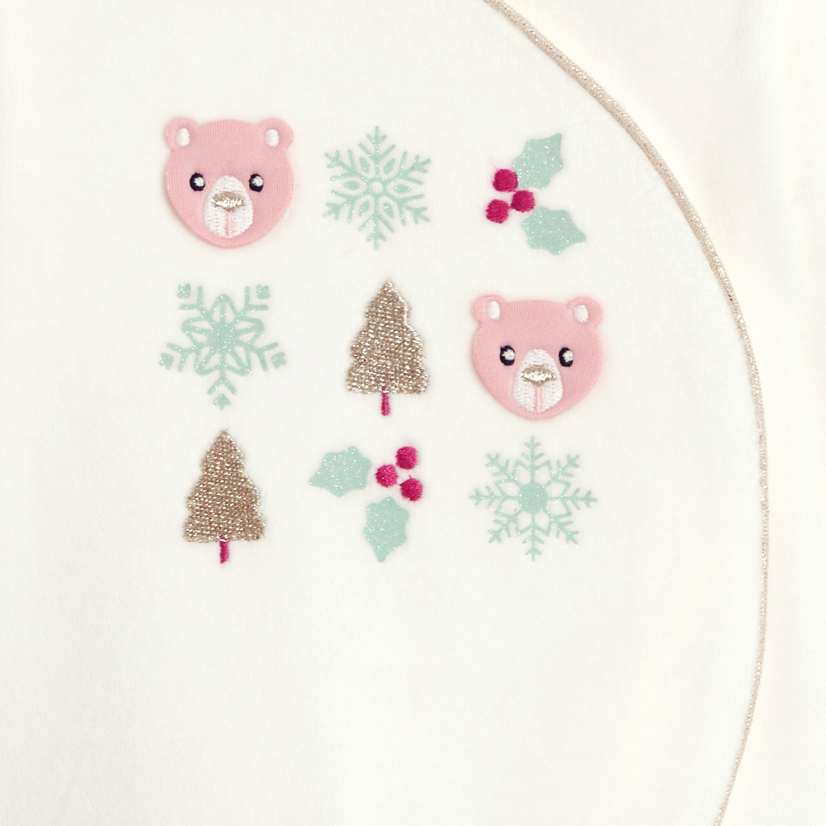 بدلة نوم مخملية مزينة برسمة دب مطرز باللون الأبيض للفتيات الصغيرات