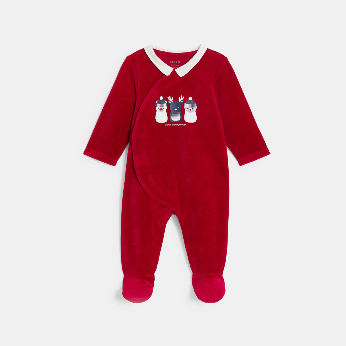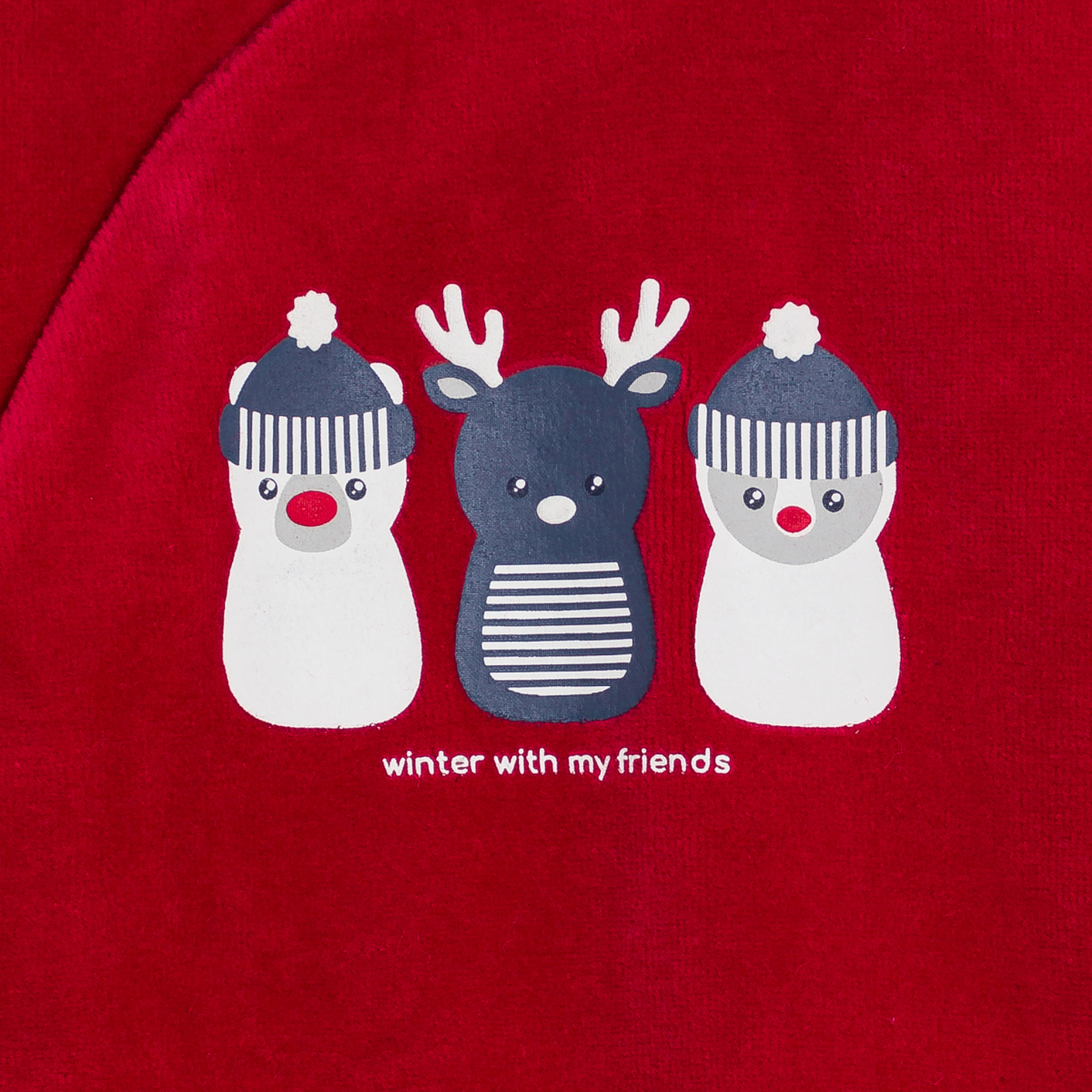 بدلة نوم مخملية شتوية باللون الأحمر للأولاد الصغار