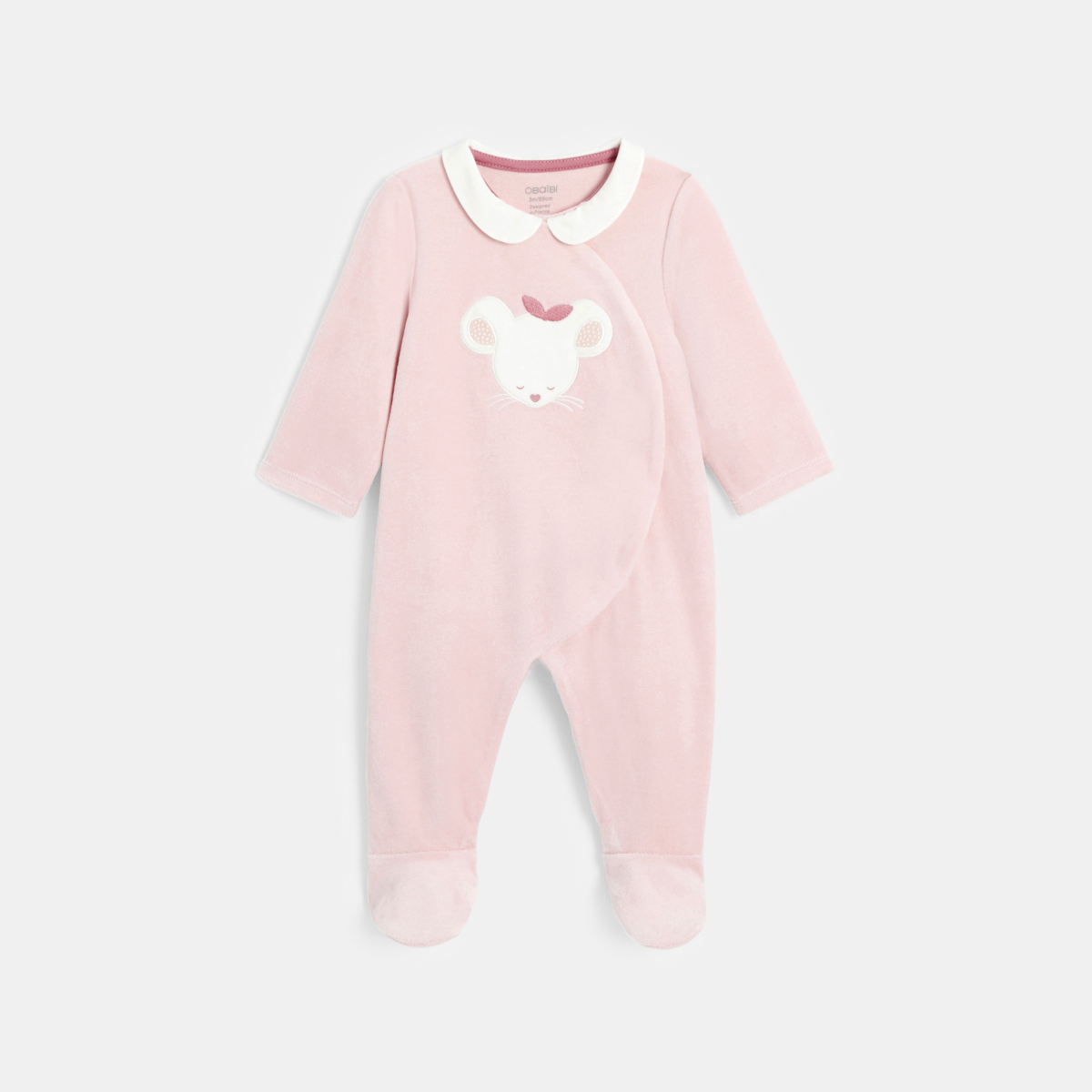 بذلة نوم مخملية برسمة فأر، باللون الوردي للفتيات الصغيرات