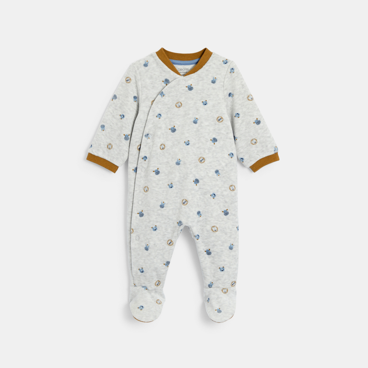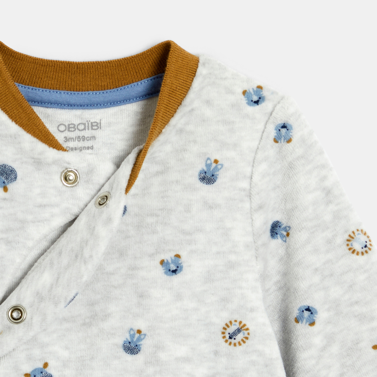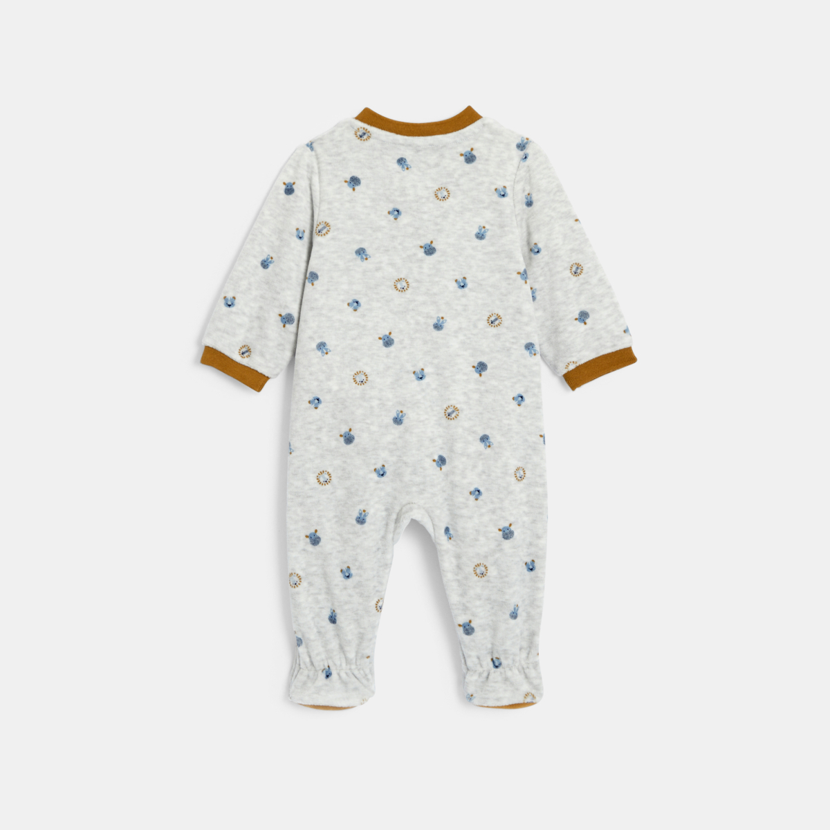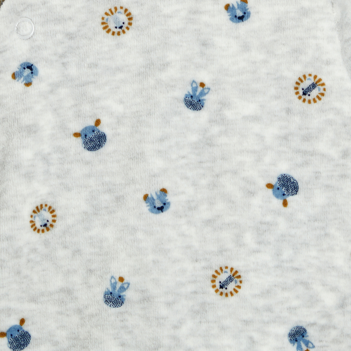 بذلة نوم مخملية برسمة حيوانات باللون الرمادي، للأطفال الصغار.