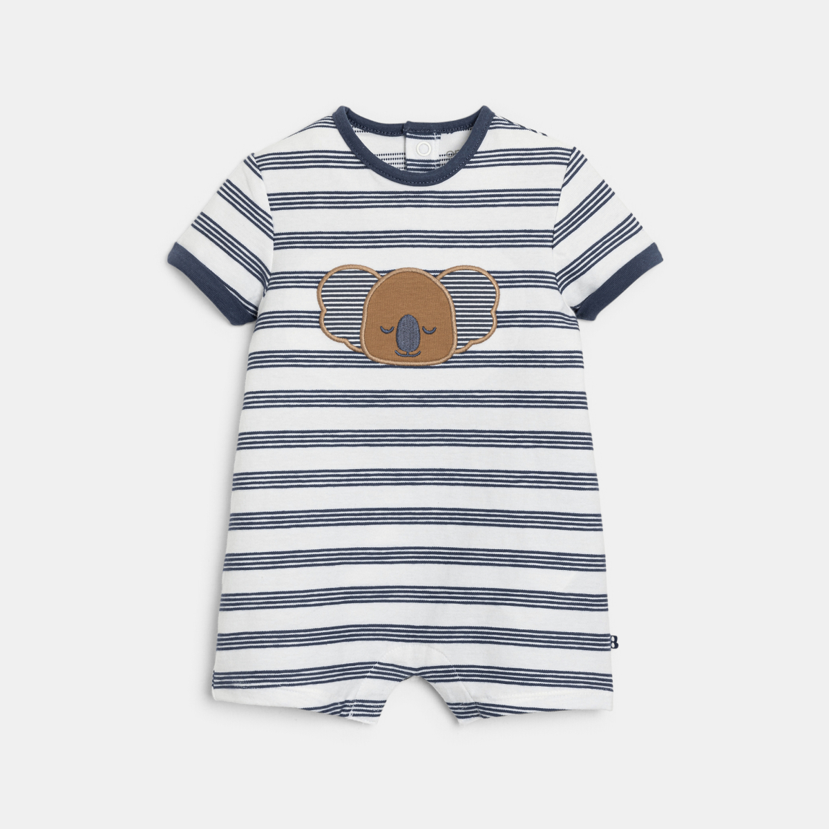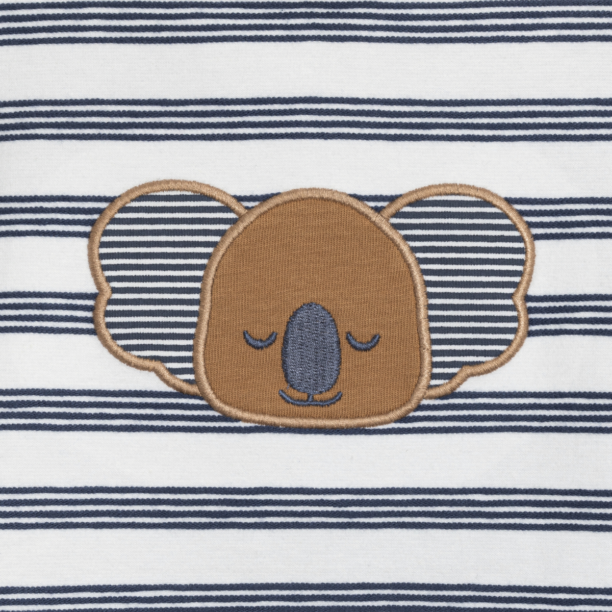 وصفي حيوان الكوالا الصديق يعتني بالصغار! الأولاد محاطون بالراحة والنعومة في هذا الأفرول المخطط. تصميم بأكمام وأرجل قصيرة وأزرار ضغط على إلى الظهر لسهولة الارتداء.