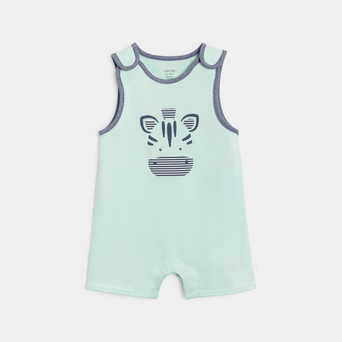 وصفي وجه الحمار الوحشي يبعث الحياة في هذا الأفرول القصير وهو مثالي للأيام الدافئة الأولى. يتميز بحمالاته ذات أزرار ضغط والأرجل القصيرة ويوفر الراحة والنعومة للأولاد الذين يستمتعون بالأيام المشمسة.