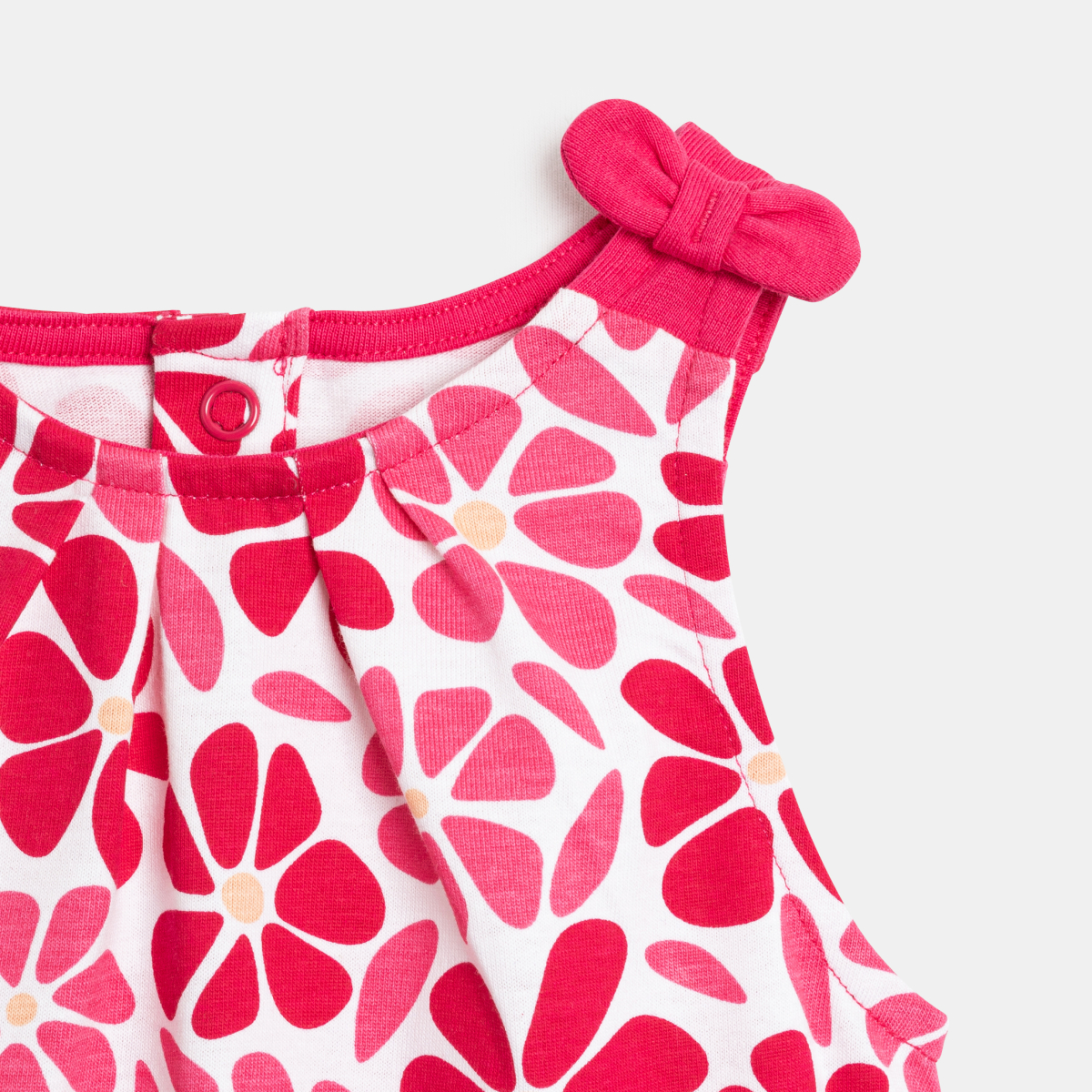 طبعة زهور مزينة بالرسومات للصغيرات الرومانسيات. هذا الأفرول القصير ضروري لتحقيق أقصى قدر من الراحة، ليلاً أو نهارًا. لجعل الفتيات يرتدين الملابس بسهولة، توجد أزرار ضغط في الأمام وعند الساقين.